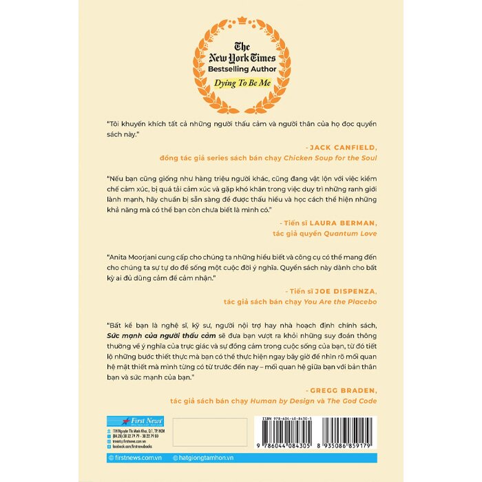 Thấu hiểu những trăn trở và khó khăn mà người thấu cảm thường đối mặt, Anita Moorjani đã viết cuốn sách “Sức mạnh của người thấu cảm” (tựa gốc: Sensitive Is the New Strong) - cuốn cẩm nang dành riêng cho người nhạy cảm trong một thế giới vốn đề cao quyền lực và sức ảnh hưởng, một thế giới mà con người dần trở nên chai sạn cảm xúc. Qua từng trang sách, Anita Moorjani sẽ giúp bạn chuyển hóa sự nhạy cảm thành sức mạnh nội tại, đồng thời hướng dẫn bạn cách kết nối và khai thác trực giác để xây dựng sự tự tin, phát triển khả năng lãnh đạo và tạo ra sự thay đổi tích cực trong cuộc sống của mình cũng như của những người xung quanh.