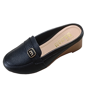 Giày Sục Nữ Giày Đế Xuồng Da Bò Thật Cực Mềm Gót Cao 5cm Evelynv 5P1816 (Đen)