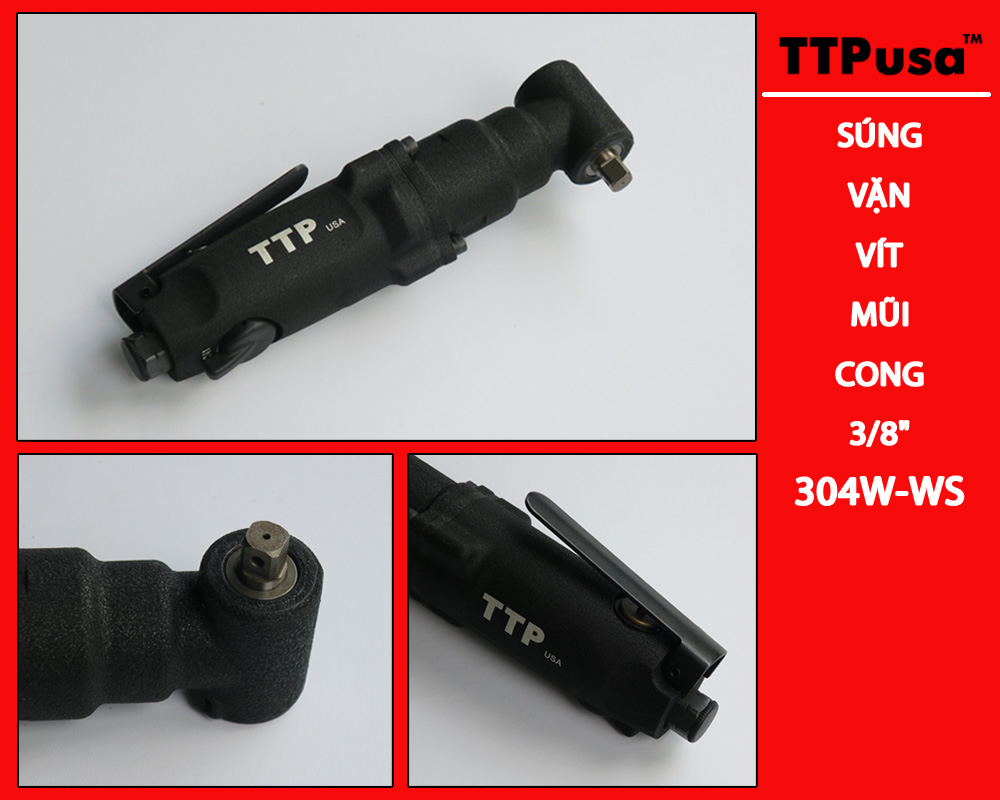 • Súng vặn vít mũi cong 3/8" TTPusa 304W-WS chuyên dùng để vặn ốc vít để lắp ráp hay để khoan. Súng vặn vít TTPusa không dùng điện mà dùng khí nén tạo ra từ máy nén khí. Rất thích hợp các tiệm sửa chữa, bảo trì và nhà máy xí nghiệp.