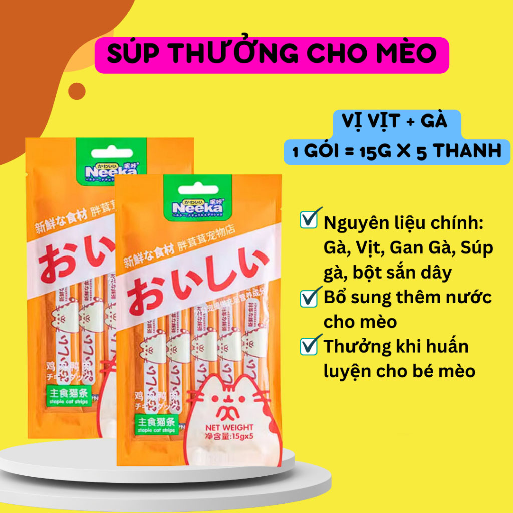 - Đặc biệt hơn, Súp thưởng Wanpy 5 thanh các vị với công thức giàu độ ẩm cung cấp thêm lượng nước dồi dào sẽ giúp hạn chế tối đa các bệnh về sỏi thận, tiết niệu… thường gặp ở Mèo (do Mèo rất lười uống nước)