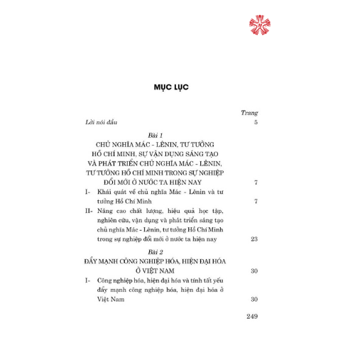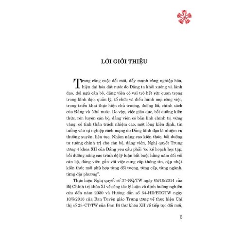 Thực hiện Nghị quyết số 37-NQ/TW ngày 09/10/2014 của Bộ Chính trị khóa XI về công tác lý luận và định hướng nghiên cứu đến năm 2030 và Hướng dẫn số 64-HD/BTGTW ngày 10/5/2018 của Ban Tuyên giáo Trung ương về thực hiện Chỉ thị số 23-CT/TW của Ban Bí thư khóa XII về tiếp tục đổi mới, nâng cao chất lượng, hiệu quả học tập, nghiên cứu, vận dụng và phát triển chủ nghĩa Mác - Lênin, tư tưởng Hồ Chí Minh trong tình hình mới; nhằm giúp các cấp ủy đảng, các địa phương triển khai chương trình bồi dưỡng, cập nhật kiến thức cho cán bộ, đảng viên ở cơ sở, Nhà xuất bản Chính trị quốc gia Sự thật phối hợp với Ban Tuyên giáo Trung ương Đảng tái bản cuốn sách "Tài liệu tham khảo bồi dưỡng, cập nhật kiến thức cho cán bộ, đảng viên ở cơ sở". Cuốn sách gồm 6 bài: Bài 1: Chủ nghĩa Mác - Lênin, tư tưởng Hồ Chí Minh, sự vận dụng sáng tạo và phát triển chủ nghĩa Mác - Lênin, tư tưởng Hồ Chí Minh trong sự nghiệp đổi mới ở nước ta hiện nay. Bài 2: Đẩy mạnh công nghiệp hóa, hiện đại hóa ở Việt Nam. Bài 3: Về xây dựng nền kinh tế thị trường định hướng xã hội chủ nghĩa ở Việt Nam. Bài 4: Về đảng cầm quyền và xây dựng Đảng trong sạch, vững mạnh trong điều kiện mới. Bài 5: Về xây dựng Nhà nước pháp quyền xã hội chủ nghĩa ở Việt Nam. Bài 6: Toàn cầu hóa và hội nhập quốc tế của Việt Nam.