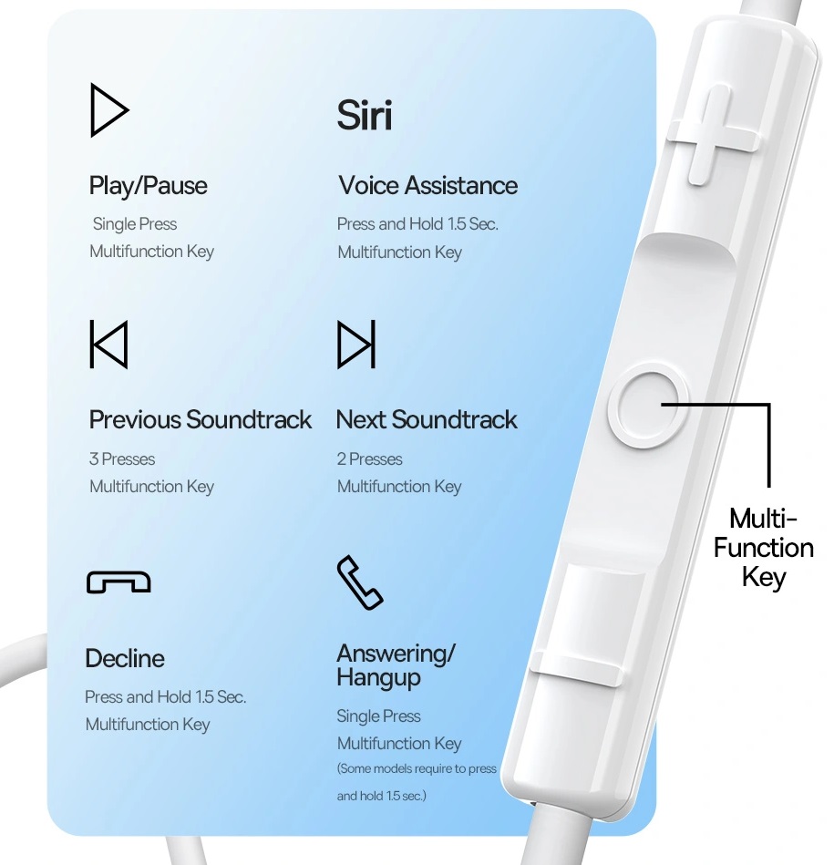 1. Certifying MFi chip 2. Compatible with all iOS moblie 3. Button to take/reject calls, adjust volume, change song, pause the music, wake up Siri 4. Material: TPE 5.Type: Lightning 6.Color: Black