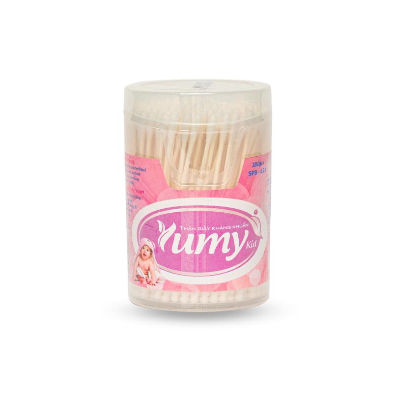 Tăm bông trẻ em YUMY Baby hộp vát size M – thân giấy chắc chắn, đầu bông xoắn mềm mịn, không rụng sợi, an toàn cho da nhạy cảm của trẻ nhỏ. Hộp 180 que