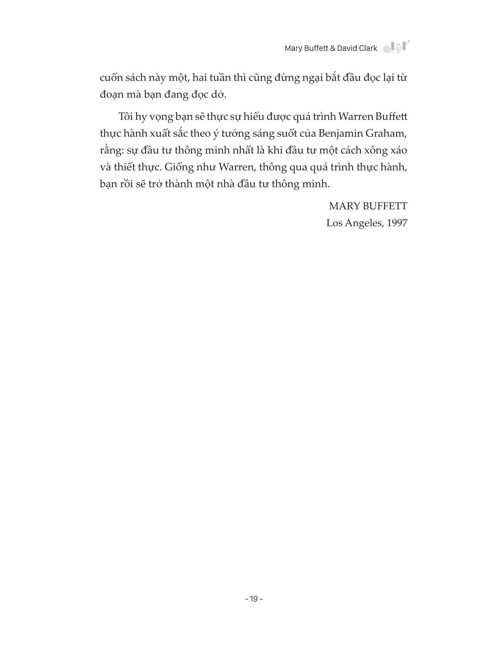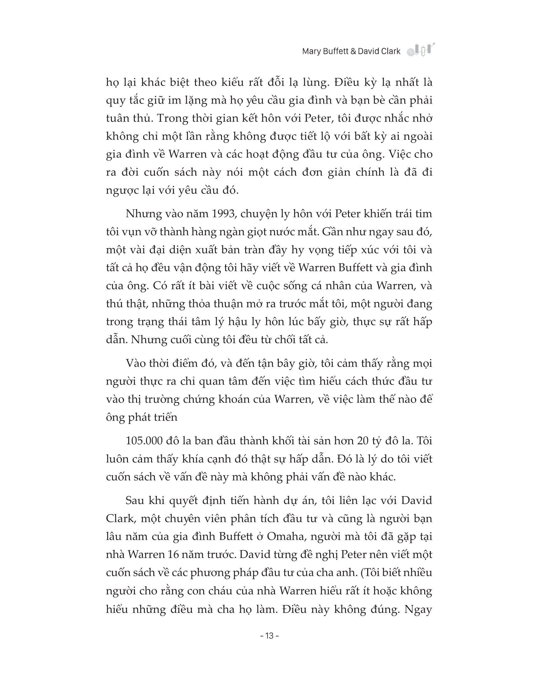 David Clark là đồng tác giả cuốn sách, đồng thời là một người bạn thân thiết của gia đình Buffett. Trong hơn hai mươi năm, David Clark được coi là người có thẩm quyền hàng đầu thế giới về các phương pháp đầu tư của Warren Buffett. Cuốn sách về đầu tư bán chạy nhất thế giới này của ông và Mary Buffett đã được dịch ra hơn 20 thứ tiếng và được coi là cuốn sách “đầu tư kinh điển” trên toàn thế giới.