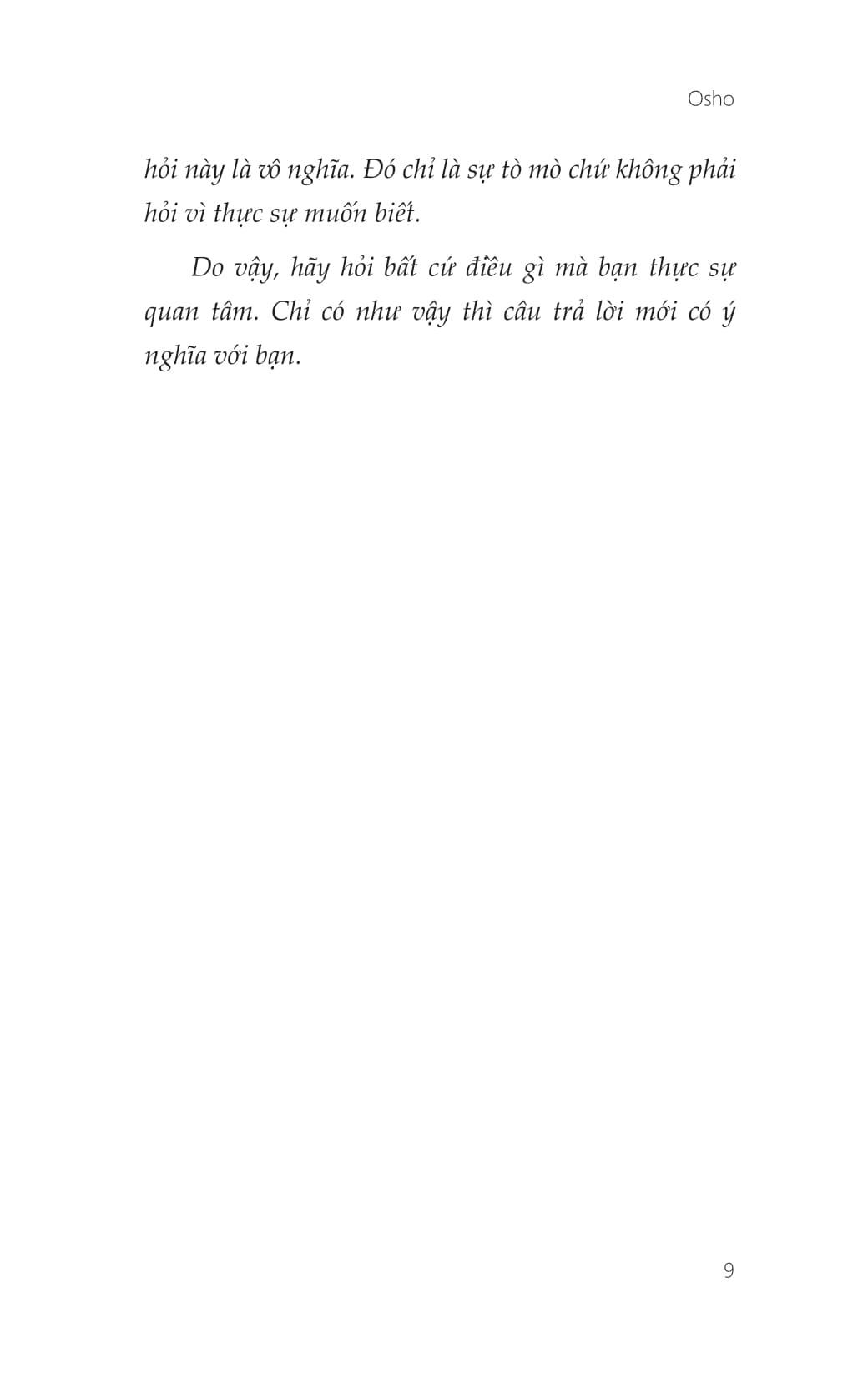 Với “Tâm trí tỉnh thức”, bạn sẽ hiểu được chân lý của Osho: Khi bạn sống đích thực và chân thành, hãy sống một cuộc đời theo cách của bạn, dưới ánh sáng của chính bạn, không phụ thuộc vào kế hoạch mà người khác lập cho bạn. Khi bạn đang vận động mỗi ngày để tiến đến một nơi vô định mà không có ý niệm về điều sẽ xảy ra, với sự sáng tạo, nhạy cảm, nhận thức tuyệt vời, nhưng không chấp nhận một hệ tư tưởng cố định; khi bạn đang khám phá những thảo nguyên mới mẻ, những đỉnh cao mới trong cuộc sống thì chắc chắn bạn không còn là một phần của đám đông nữa.