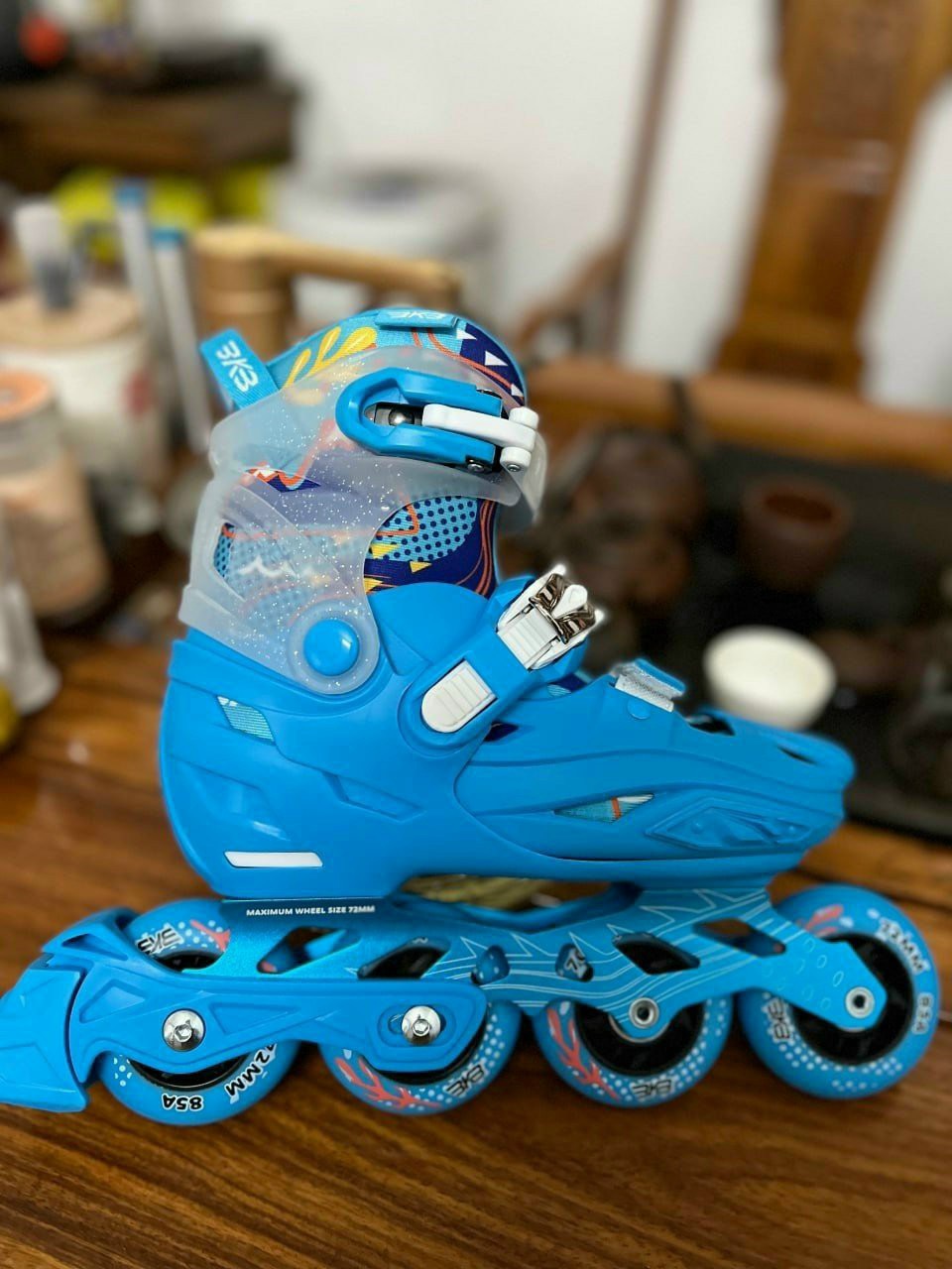 Giày patin Flying Eagle Q8 lắp 1 bên đỏ 1 bên xanh dương mẹ tặng sn con trai 9t ở Cần Thơ