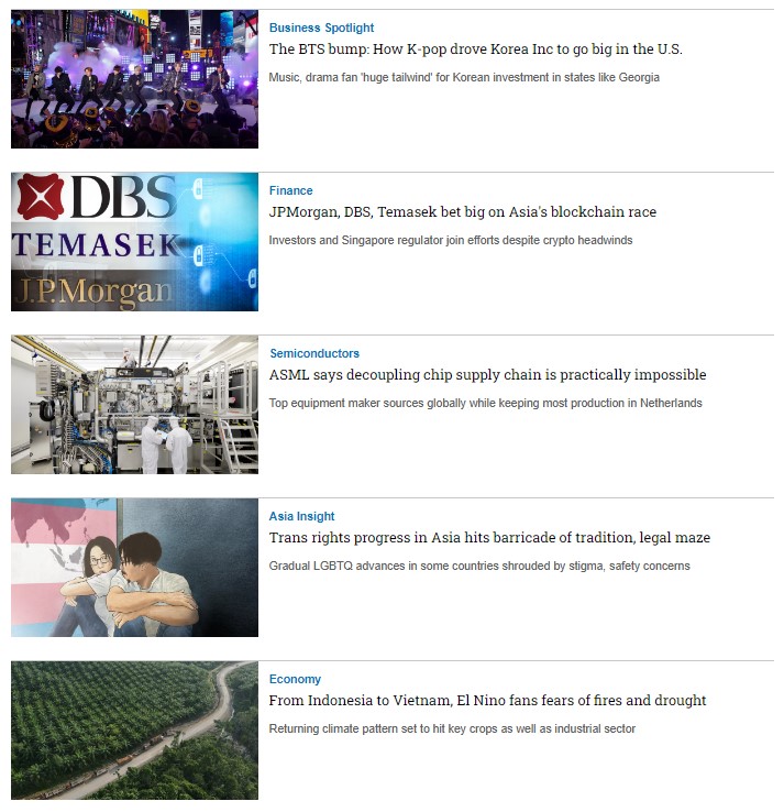 Nikkei Asia là tạp chí tiếng Anh có tên tuổi thuộc tập đoàn Nikkei - Nhật Bản, chuyên viết về những xu hướng kinh tế, công nghệ, chính trị của các nước trong khu vực