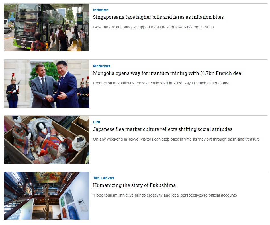 • Là thương hiệu truyền thông lớn và được kiểm duyệt nội dung hằng tuần với dạng thông tin chính thống, được thu thập từ các phóng viên uy tín trên toàn Châu Á, là nguồn trích xuất cho nhiều nhà báo tại Việt Nam.