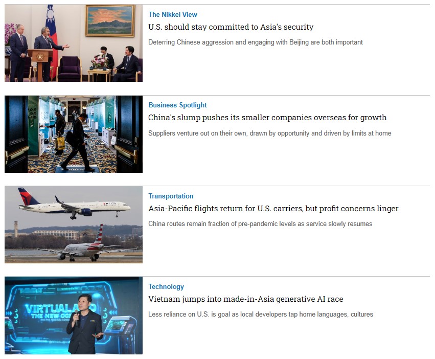 Nikkei Asia là tạp chí tiếng Anh có tên tuổi thuộc tập đoàn Nikkei - Nhật Bản, chuyên viết về những xu hướng kinh tế, công nghệ, chính trị của các nước trong khu vực