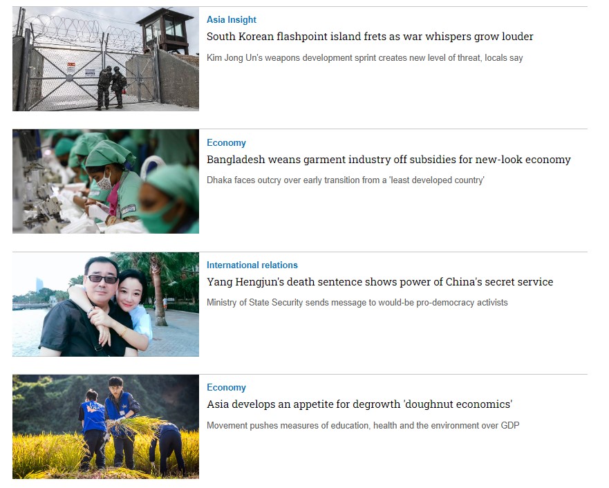 Nikkei Asia là tạp chí tiếng Anh có tên tuổi thuộc tập đoàn Nikkei - Nhật Bản, chuyên viết về những xu hướng kinh tế, công nghệ, chính trị của các nước trong khu vực châu Á - Thái Bình Dương gồm có Việt Nam. Ngoài ra còn cung cấp các phân tích từ chuyên gia, nhà báo về đời sống và văn hóa các nước châu Á. (Trending, Business, Markets,Tech, Politics, Economy, Features, Opinion, Life & Arts).