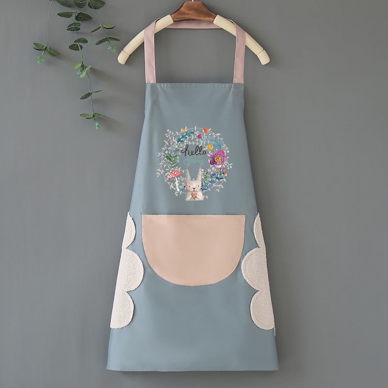 Tạp dề nấu ăn chống thấm nước, tạp dề pha chế có túi, tạp dề hoạ tiết có khăn lau bên hông