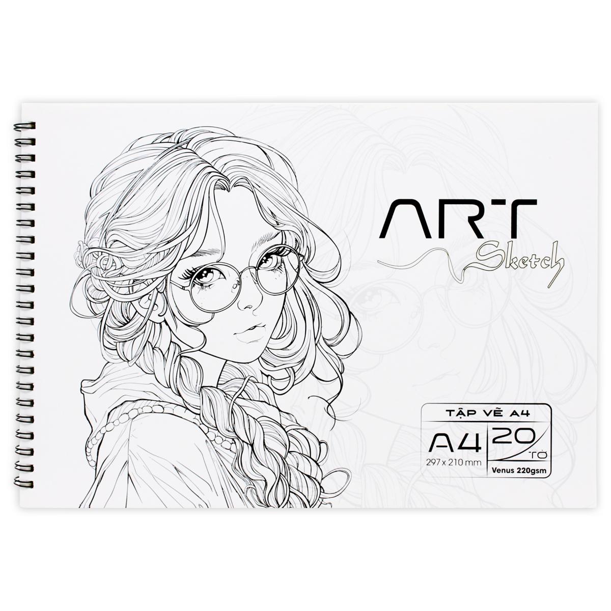 Tập Vẽ Lò Xo Art Journal A4 - 40 Trang 220gsm - The Sun - Manga Girl 01 - Có bề mặt xốp nhẹ, thích hợp làm phác thảo, vẽ hình họa, vẽ tranh bằng