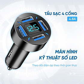 ✨Tẩu Sạc 4 Cổng USB 4.8A | Tẩu Sạc 4 Cổng USB Sạc Được Nhiều Thiết Bị Cùng Lúc, Tương Thích Với Nhiều Thiết Bị