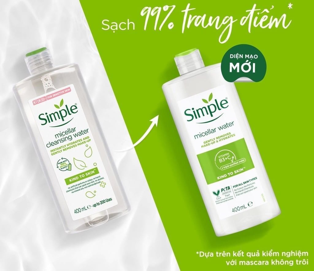 Mua tại Tiktokchứa các thành phần như Vitamin B3, Vitamin, nước tinh khiết giúp làm sạch sâu, làm sạch lớp makeup nặng nề, không gây bít tắc lỗ chân lông đồng thời bổ sung, tăng cường độ ẩm tức thì cho làn da thuộc thương hiệu Simple đến từ Anh .