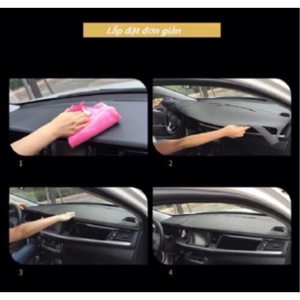 Đặc điểm: Chất liệu da cao cấp, Có đế chống trượt, Màu da vân các bon đen mịn màng Chất Thảm chống nắng taplo Da lượng như hình