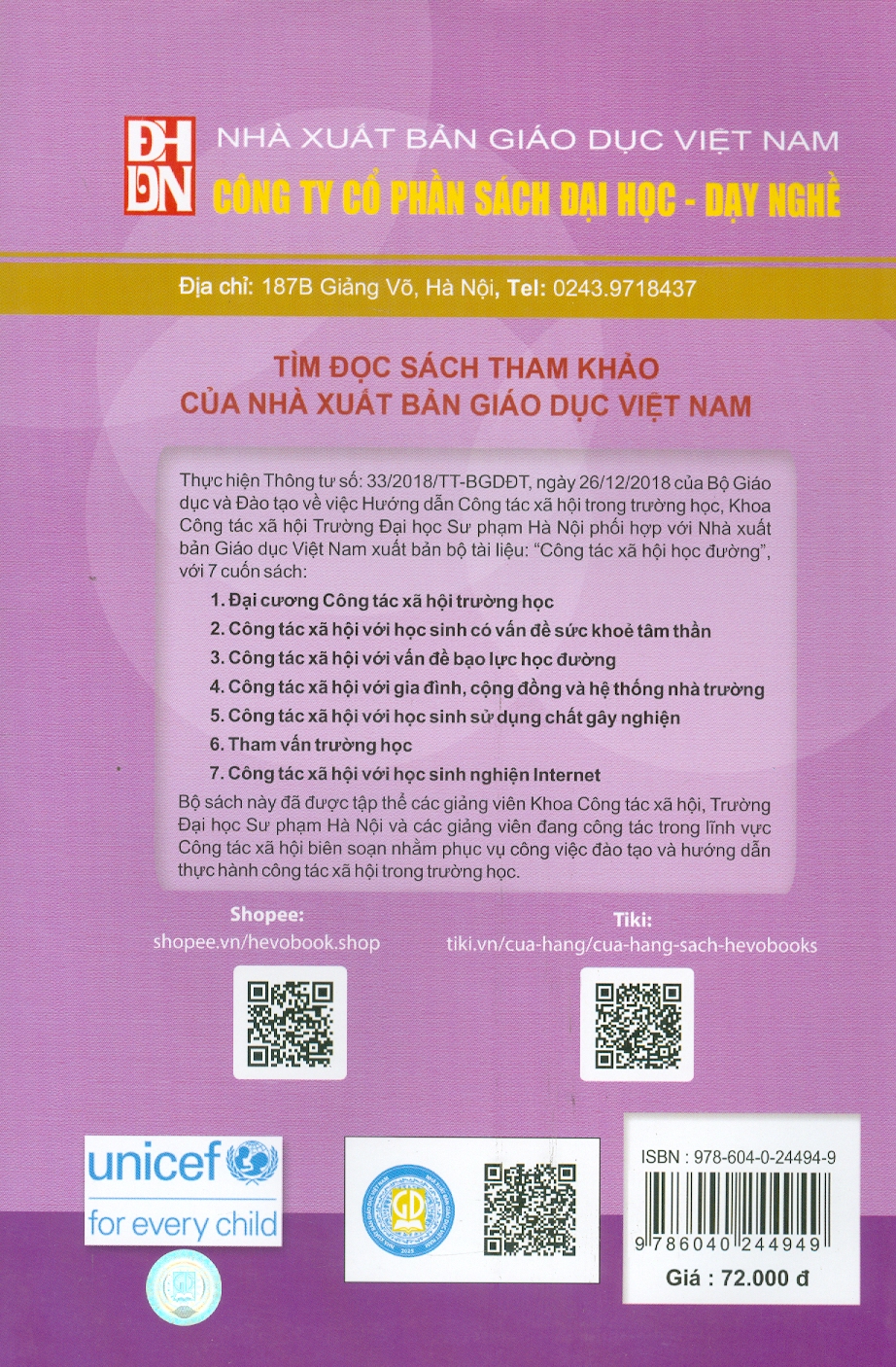 Mua tại TiktokCuốn 1: Đại cương công tác xã hội trường học Tác giả: Nguyễn Hiệp Thương (Chủ biên), Nguyễn Thanh Bình, Phạm Văn Tư, Đỗ Nghiêm Thanh Phương, Nguyễn Văn Hiếu. Giá bìa: 60.000 đồng Cuốn sách gồm