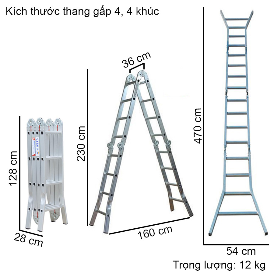 Mua tại TiktokThang nhôm gấp 4 khúc Nikita Nik44 chân thẳng Thang nhôm gấp 4 khúc khóa sập tự động là loại thang được thiết kế với 4 khúc thang riêng biệt, được nối với nhau bằng hệ thống chốt khóa sập tự động và các khớp nối. Thang có thể gấp gọn lại giúp người dùng dễ dàng mang vác, di chuyển. Cấu tạo:Thang nhôm gấp 4 khúc khóa sập tự động có cấu tạo gồm các bộ phận chính sau: ️1: Bậc thang: Bậc thang được làm từ hợp kim nhôm cao cấp, có độ bền cao, chịu lực tốt. Bậc thang có chiều rộng và khoảng cách giữa các bậc phù hợp với người sử dụng, giúp người dùng leo lên xuống an toàn và thoải mái. ️2: Chốt khóa sập tự động: Chốt khóa sập tự động được làm từ hợp kim thép không gỉ, có độ bền cao. Chốt khóa tự động giúp thang được cố định chắc chắn, tránh tình trạng thang bị sập khi sử dụng. ️3: Khớp nối: Khớp nối được làm từ hợp kim thép không gỉ, có độ bền cao. Khớp nối giúp các khúc thang được nối với nhau một cách chắc chắn, đảm bảo an toàn cho người sử dụng. ️4: Chân thang: Chân thang được làm từ cao su có các rãnh chống trượt, giúp thang đứng vững trên các bề mặt không bằng phẳng. => Ưu điểm: Thang nhôm gấp 4 khúc khóa sập tự động có những ưu điểm nổi bật sau: 1: Thiết kế linh hoạt: Thang có thể gấp gọn lại giúp người dùng dễ dàng mang vác, di chuyển. Thang có thể sử dụng được ở nhiều vị trí khác nhau, phù hợp với nhiều công việc khác nhau. 2: Chất lượng cao: Thang được làm từ hợp kim nhôm cao cấp, có độ bền cao, chịu lực tốt. Chốt khóa sập tự động và khớp nối được làm từ hợp kim thép không gỉ, có độ bền cao, đảm bảo an toàn cho người sử dụng. 3: An toàn: Thang có thiết kế chắc chắn, các khớp nối được cố định chắc chắn, tránh tình trạng thang bị sập khi sử dụng. Chân thang có các rãnh chống trượt, giúp thang đứng vững trên các bề mặt không bằng phẳng. => Ứng dụng