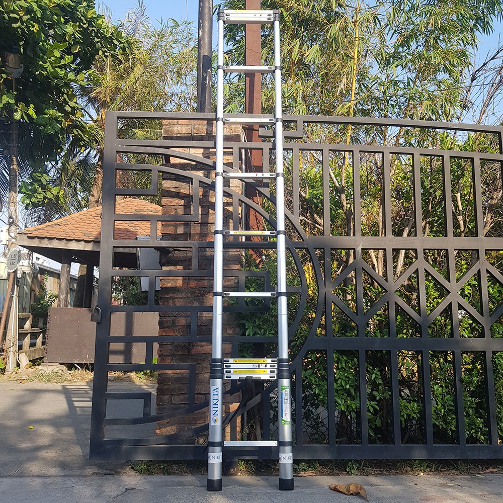 Giá thành bình dân với người lao động Việt.         ❖ Thương hiệu NIKITA được dập chìm trên thân thang trên dây chuyển sản xuất ngay tại nhà máy, tránh tình trạng thương lái Việt Nam nhập hàng giã hàng nhái về dán tem NIKITA làm giả thương hiệu, đánh lừa người mua.         ❖ Ống nhôm dày chắc chắn đảm bảo an toàn cho người sử dụng, cho tải trọng thang lên đến 150 Kg, được sản xuất bằng vật liệu nhôm cao cấp 6063 nên dù ống nhôm dày thang vẫn đảm bảo trọng lượng nhẹ nhàng cho người sử dụng dễ dàng mang theo trong quá trình làm việc. Bên dưới mỗi bật nhà sản xuất đều lót 1 lớp ron cao su cho cơ cấu trượt nhẹ nhàng, chống bụi bạm chất bẩn lọt vào thân thang làm sước nhôm gây hiện tượng rít khó trượt.       ❖ Chân đế thang được thiết kế từ vật liệu cao su non thiết kế nhiều khe rãnh, cho khả năng bám sàn cao, chống trượt thang, chống trầy sàn nhà, an toàn thân thiện với người dùng.       ❖ Chụp thang bằng nhựa pp bền dẻo chống các chất bẩn đất các lọt vào ống thang gây trầy sước thân thang tạo ra hiện tượng rít khó trượt, khó sử dụng. Dễ dàng mở nắp chụp châm dầu máy vào ống thang giúp thang giữ được độ nhạy dễ dàng sử dụng trong thời gian dài.     ❖ Đai giữ thang cố định thang trong quá trình di chuyển, giúp người dùng trong quá trình di chuyển mang theo không sợ thang bị bật ra gây té ngã nguy hiểm khi tham gia giao thông     ❖ Các chốt khóa bậc được sản xuất theo công nghệ Châu Âu với cơ cấu đẩy của lò xo, cho độ nhạy cao chốt khóa tự động khi kéo thang vào đúng cỡ, mờ khóa thang tự trượt suống nhẹ nhàng, dễ dàng sử dụng với mọi đối tượng, kể cả phụ nữ.       ❖ Đa dạng kích thước, đa dạng mẫu mã cho bạn sự lựa chọn thích hợp với nhu cầu cá nhân gia đình hoặc công việc chuyên dụng như điện lực, mạng viễn thông, quảng cáo       Cảm ơn quý khách đã giành thời gian quan tâm đến sản phẩm của Shop, kính chúc quý khách may mắn và thành công