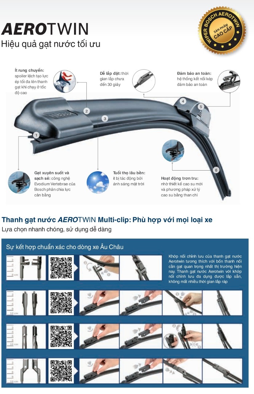 Mua tại TiktokBộ Thanh Gạt Mưa Cao Cấp Bosch AeroTwin 28 inch 700mm AEROTWIN là dòng gạt mưa cao cấp hàng đầu của Bosch dành cho xe theo tiêu chuẩn Châu Âu Ưu điểm vượt trội của Gạt mưa Bosch Aerotwin: