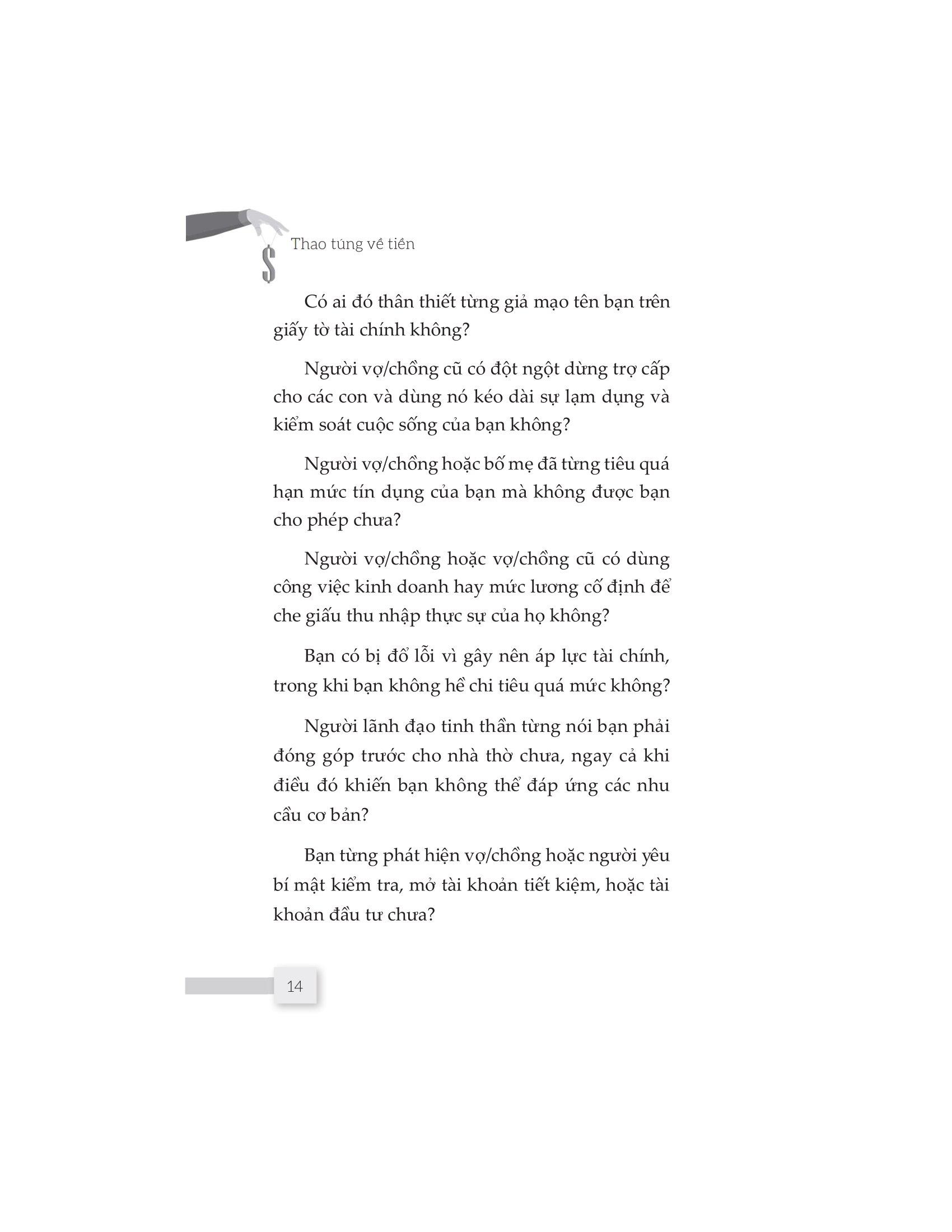 Cuốn sách “Thao túng về tiền” sẽ cho bạn cơ hội vén tấm màn che đậy và thấy được cuộc sống của những người bị tổn hại tài chính do những người thân thiết với họ gây ra. Nó cũng giúp bạn có được cái nhìn cụ thể và sâu sắc hơn về lạm dụng tài chính để nhận biết sớm, có hành động dứt khoát giúp bạn thoát khỏi hố sâu tâm lý và chữa lành những tổn thương tiềm ẩn.