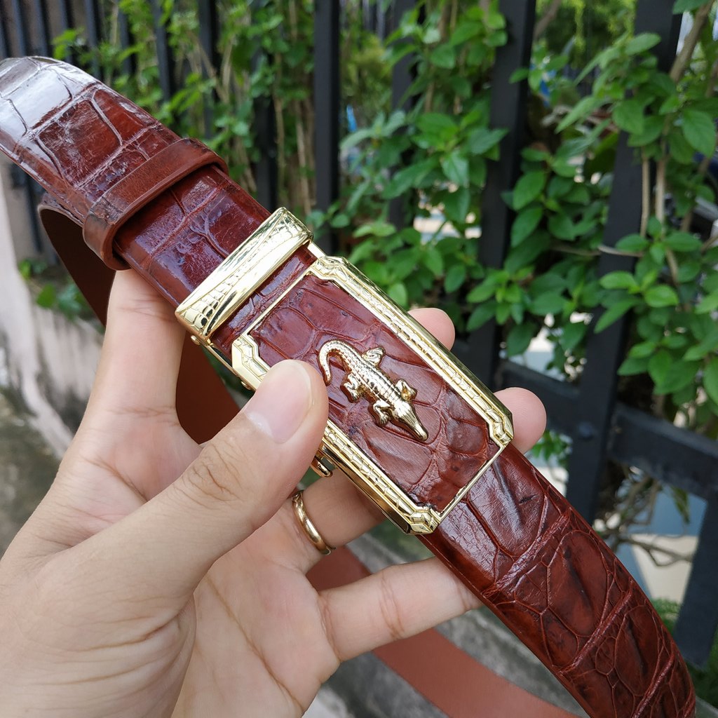 Thắt lưng da cá sấu thật phần bụng liền nguyên tấm và đầu khóa kéo tự động dễ sử dụng Yimita