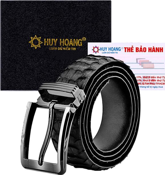 Dây nịt/Thắt lưng nam da bò Huy Hoàng đầu kim màu đen 4108