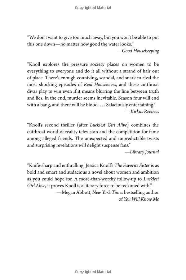 The Favourite Sister From the author of the bestselling Luckiest Girl Alive comes Jessica Knoll’s thriller, The Favourite Sister, which follows a pair of competitive and uber-success...