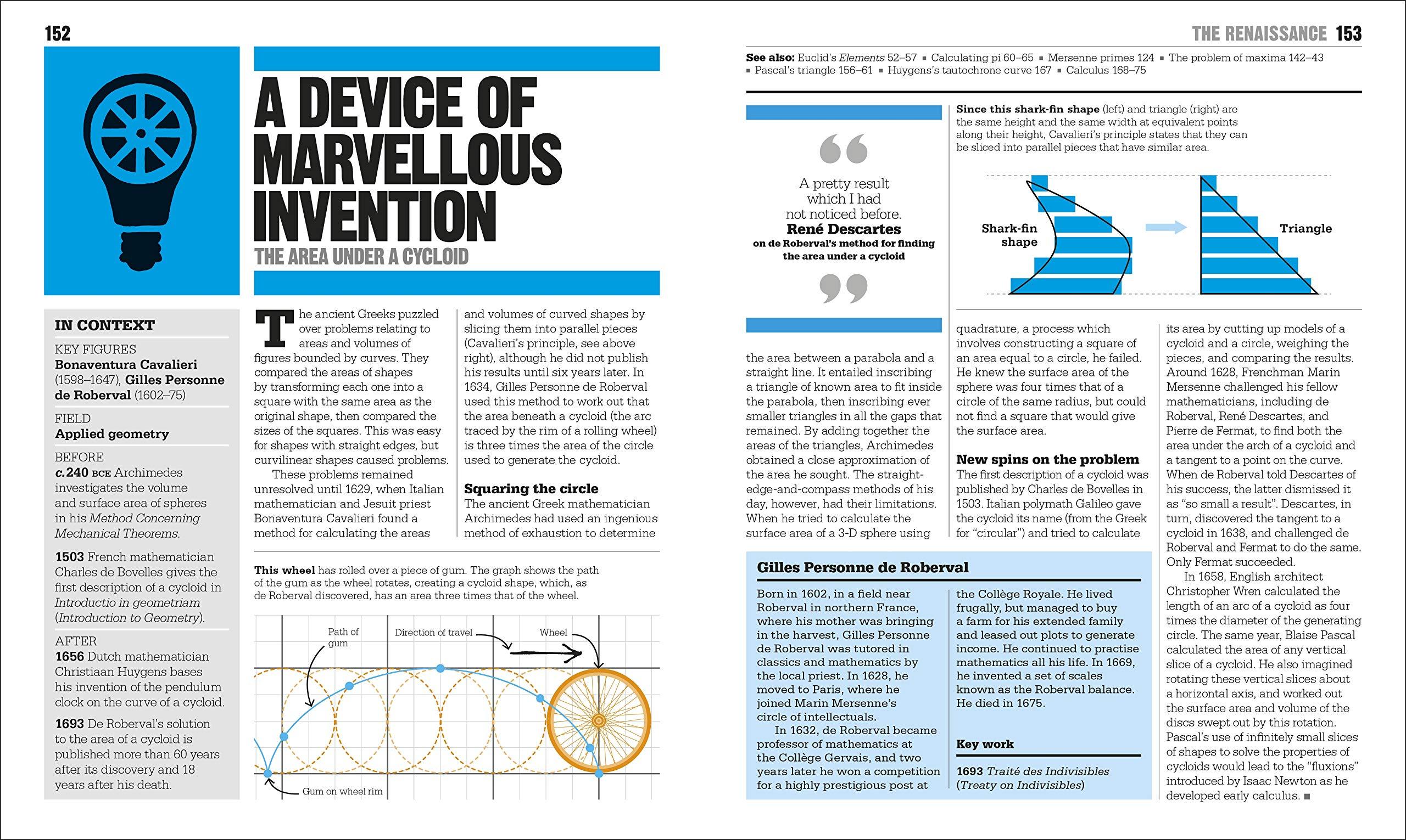 A vibrant exploration of the world's most famous and important mathematical ideas, theorems, and movements, and the great minds behind them.Take a journey through the intriguing story of numbers, patterns, and shapes in order to better understand the complex world we live in. Charting the development of maths around the world from Babylon to Bletchley Park, The Maths Book explores and explains more than 85 of the most complex and fascinating mathematical subjects. This diverse and inclusive account of mathematics will have something for everybody. It examines the maths behind world economies, secret spies, and modern technology such as computers, the internet, and AI. But it also traces the history of maths, from the mathematical ideas and inventions of the ancient world such as the first number systems, magic squares, and the Chinese abacus, through the discovery of zero and Fermat's last theorem, to the rise of group theory in the 19th century. Continuing the "Big Ideas" series' trademark combination of authoritative, clear text and bold graphics, The Maths Book uses an innovative visual approach to make the subject accessible to everyone, casual readers and students alike .