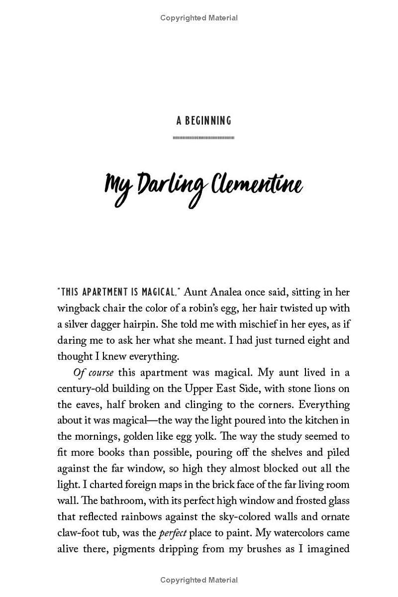 Her aunt always said the apartment was a pinch in time, a place where moments blended together like watercolors. And Clementine knows that if she lets her heart fall, she’ll be doomed.