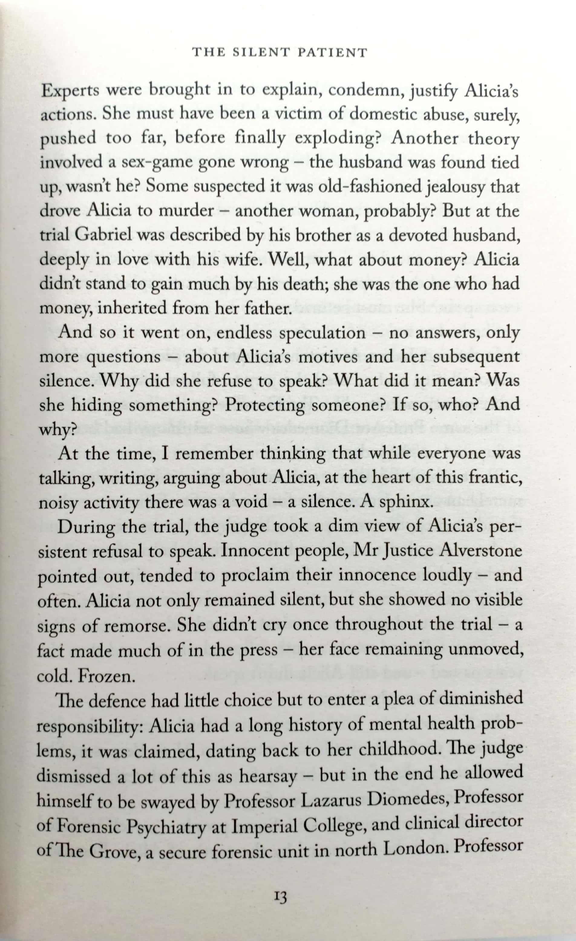 The Silent Patient book review NO SPOILERS #booktube #bookreview #thriller