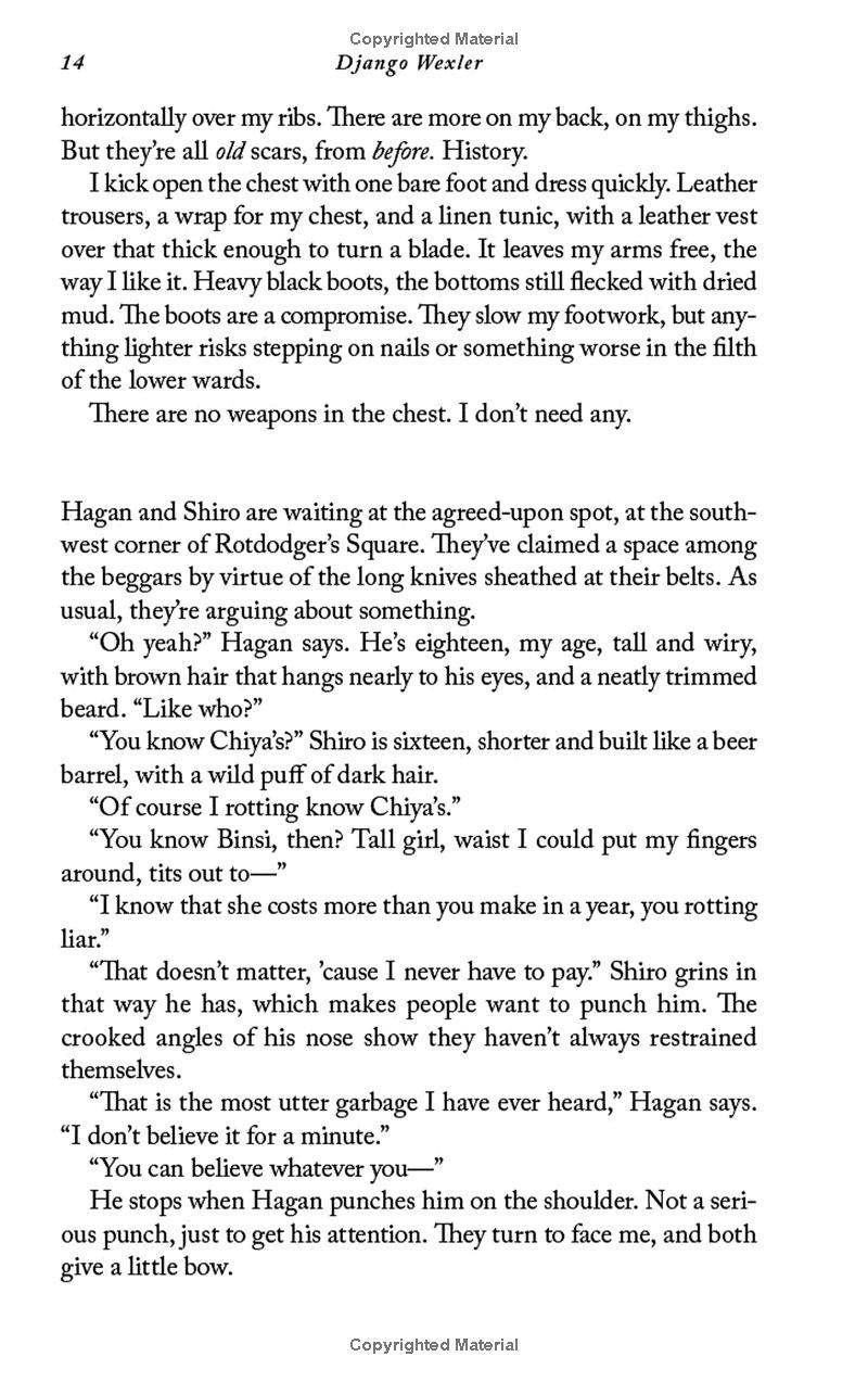 In the lower wards of Kahnzoka, the great port city of the Blessed Empire, eighteen-year-old ward boss Isoka enforces the will of her criminal masters with the power of Melos, the Well of Combat. The money she collects goes to keep her little sister living in comfort, far from the bloody streets they grew up on.