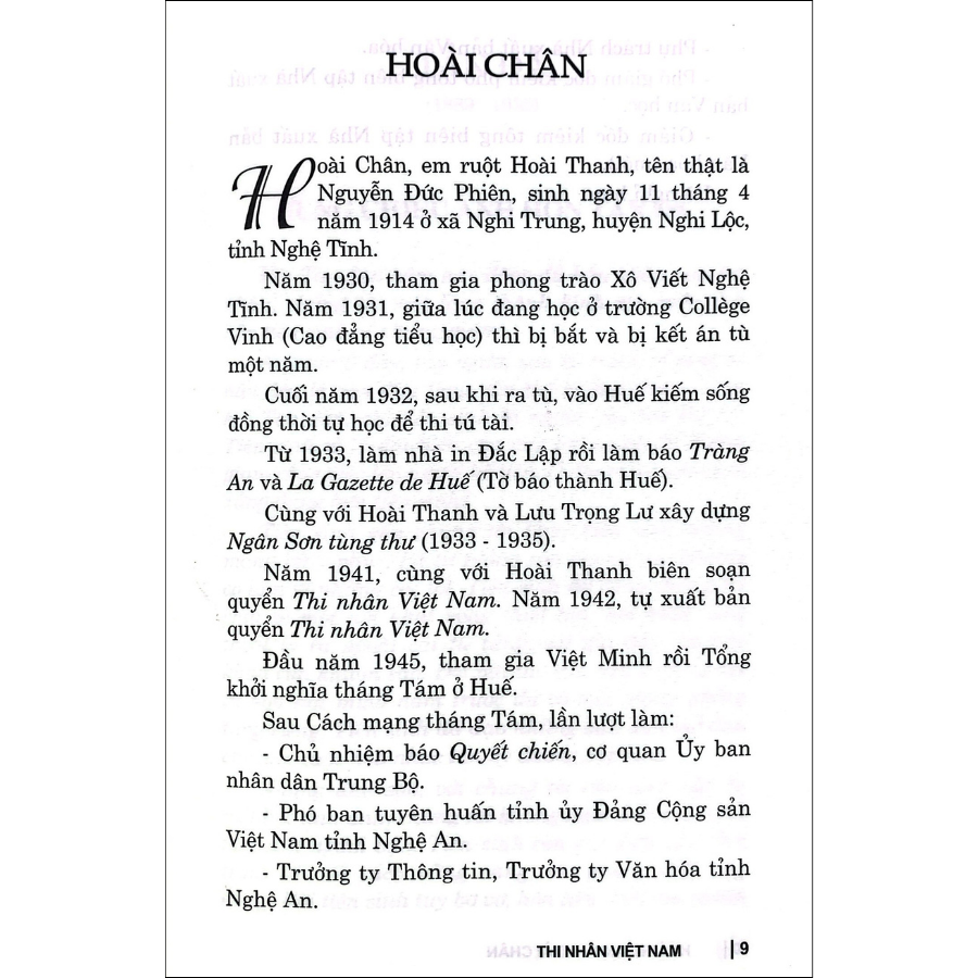 Ngay lúc bấy giờ hai tác giả Hoài Thanh và Hoài Châu đã sớm nhận ra giá trị ấy đã kịp thời sưu tầm, giới thiệu các thành tựu của phong trào Thơ mới qua tác phẩm "Thi nhân Việt Nam" và đã cho xuất bản vào đầu năm 1942.