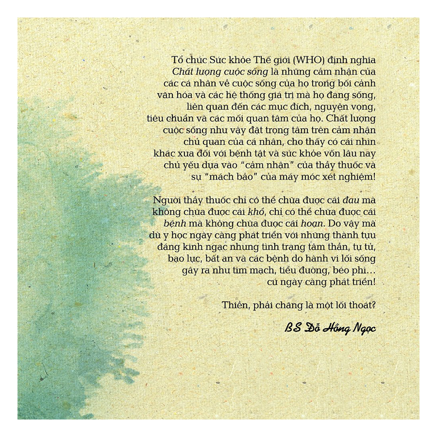 …Trong tập tài liệu nhỏ này, tôi chỉ khu trú vào mối tương quan giữa Thiền và Sức khỏe mà tôi đã được trải nghiệm, nhằm góp phần vào việc bảo vệ và nâng cao sức khỏe cho mọi người, theo đó, sức khỏe được định nghĩa như là “một sự hoàn toàn sảng khoái (well-being; bien-être) về thể chất, tâm thần và xã hội chớ không phải chỉ là không có bệnh hay tật” (WHO, 1946).