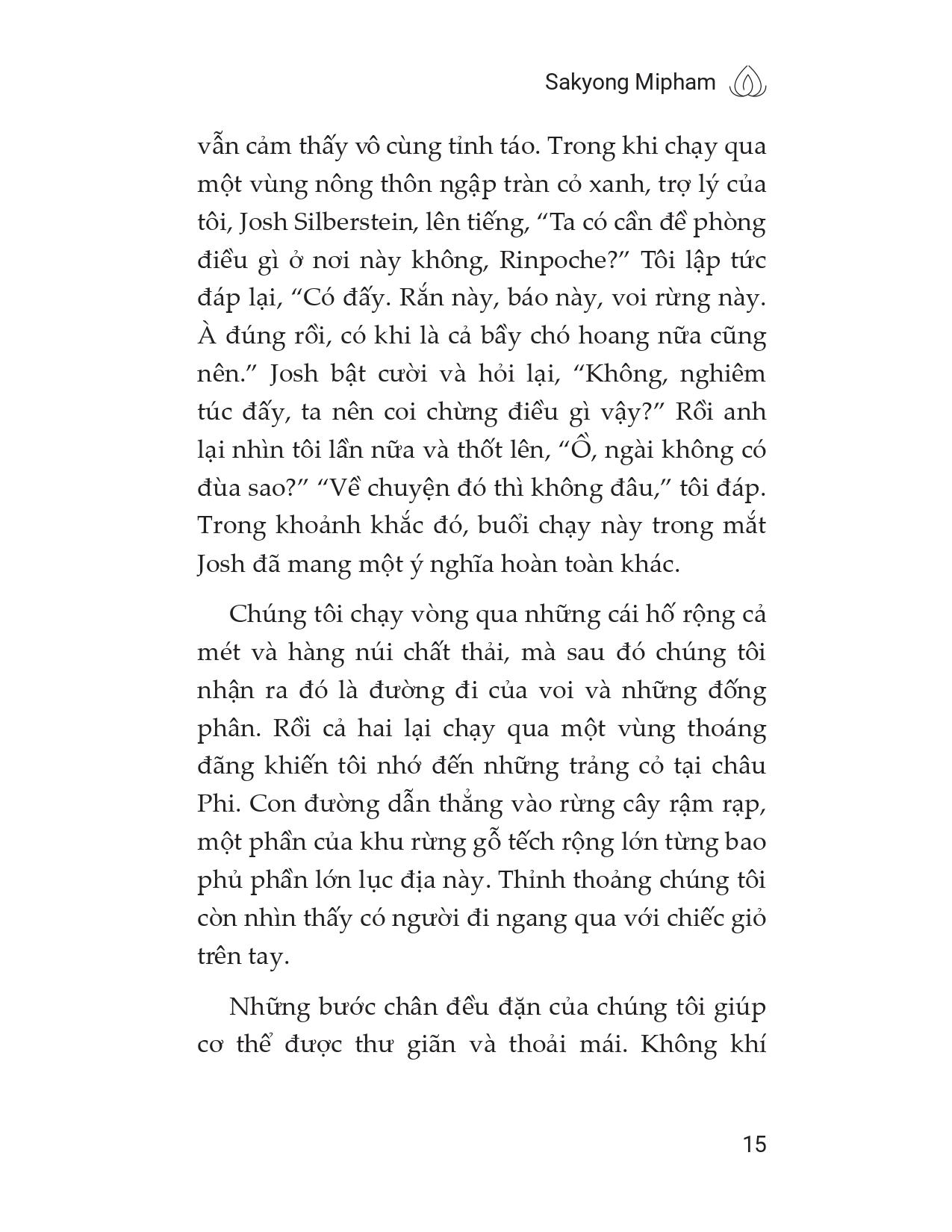“Cuốn sách tuyệt vời và dễ đọc này ẩn tàng vô số kiến thức uyên tâm. Những bài học mà Sakyong Mipham đưa ra giống như một liều vitamin tinh thần sẽ giúp nuôi dưỡng tâm hồn của người chạy.”