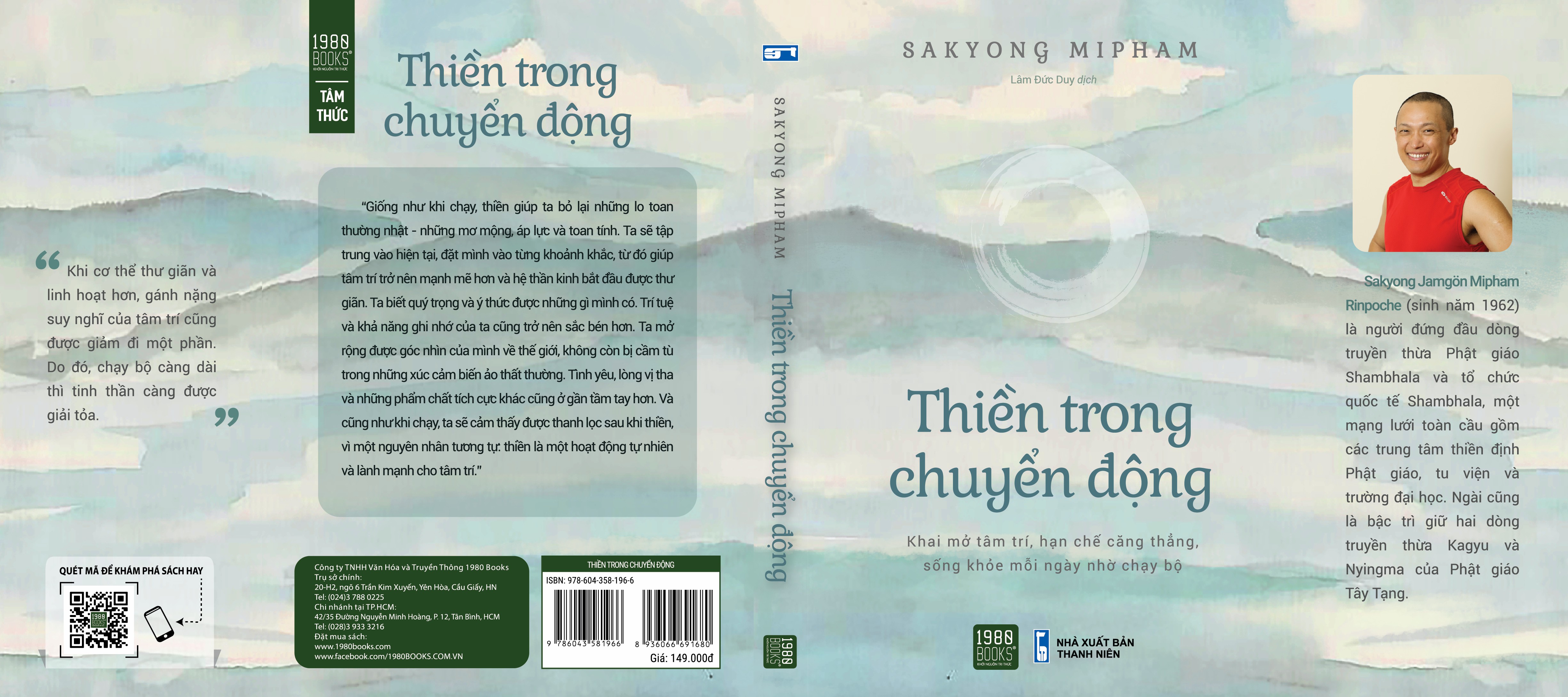 THIỀN TRONG CHUYỂN ĐỘNG “Giống như khi chạy, thiền giúp ta bỏ lại những lo toan thường nhật - những mơ mộng, áp lực và toan tính. Ta sẽ tập trung vào hiện tại, đặt mình vào từng khoảnh khắc, từ đó giúp tâm trí trở nên mạnh mẽ hơn và hệ thần kinh bắt đầu được thư giãn. Ta biết quý trọng và ý thức được những gì mình có. Trí tuệ và khả năng ghi nhớ của ta cũng trở nên sắc bén hơn. Ta mở rộng được góc nhìn của mình về thế giới, không còn bị cầm tù trong những xúc cảm biến ảo thất thường. Tình yêu, lòng vị tha và những phẩm chất tích cực khác cũng ở gần tầm tay hơn. Và cũng như khi chạy, ta sẽ cảm thấy được thanh lọc sau khi thiền, vì một nguyên nhân tương tự: thiền là một hoạt động tự nhiên và lành mạnh cho tâm trí.” Là một Lạt ma Tây Tạng và là lãnh đạo của Shambhala (một cộng đồng quốc tế gồm 165 trung tâm thiền định), Sakyong Mipham nhận thấy hoạt động thể chất là điều cần thiết cho sức khỏe tinh thần. Dù được đào tạo về cưỡi ngựa và võ thuật, nhưng ngài lại có tình yêu đặc biệt với chạy. Trong cuốn sách này, ngài đã trình bày về quá trình kết hợp chạy bộ với việc thực hành tâm linh, đưa ra những hướng dẫn và nguyên tắc thiền cơ bản mà mình đã phát triển. Dù đây là hai hoạt động phức tạp, nhưng các bài học trong cuốn sách này lại rất đơn giản và được thiết kế để chỉ ra rằng tất cả mọi người - bất kể tuổi tác, nền tảng tinh thần hoặc khả năng - đều có thể kết hợp giữa thực hành nội tâm với vận động cơ thể, nhằm mang lại lợi ích cho cơ thể và tâm hồn.