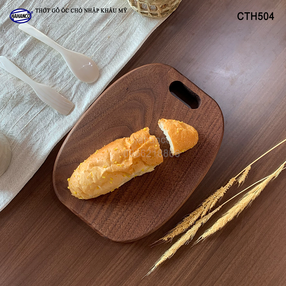 ✨Thớt gỗ óc chó nhập khẩu Mỹ liền khối (hình bầu dục lỗ dài) trang trí bàn ăn/ khay bánh mì/trái cây tráng miệng/bít tết/ Kê Thức Ăn Khi Thái/Pizza/Decor/chụp ảnh sản phẩm - CTH504
