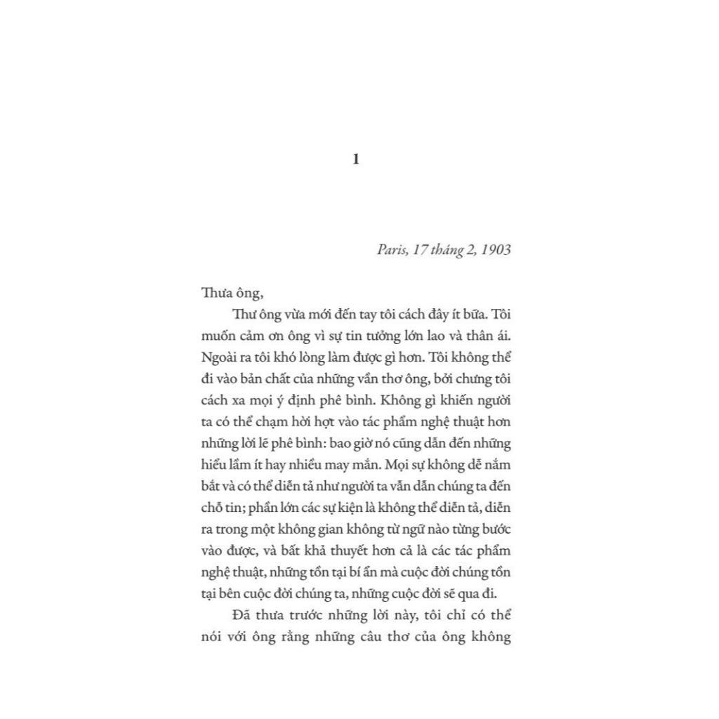 "Ông còn quá trẻ, còn đứng trước mọi khởi đầu, và tôi muốn xin ông, hết lòng xin ông, ông thân mến, hãy kiên nhẫn với mọi điều còn ngổn ngang trong trái tim ông và hãy cố gắng yêu lấy bản thân những câu hỏi như những căn phòng khóa, như những cuốn sách viết bằng một ngôn ngữ lạ. Đừng tìm kiếm những câu trả lời bây giờ, chúng không thể trao cho ông bởi đằng nào ông cũng không thể sống chúng. Mà vấn đề là sống mọi thứ.”