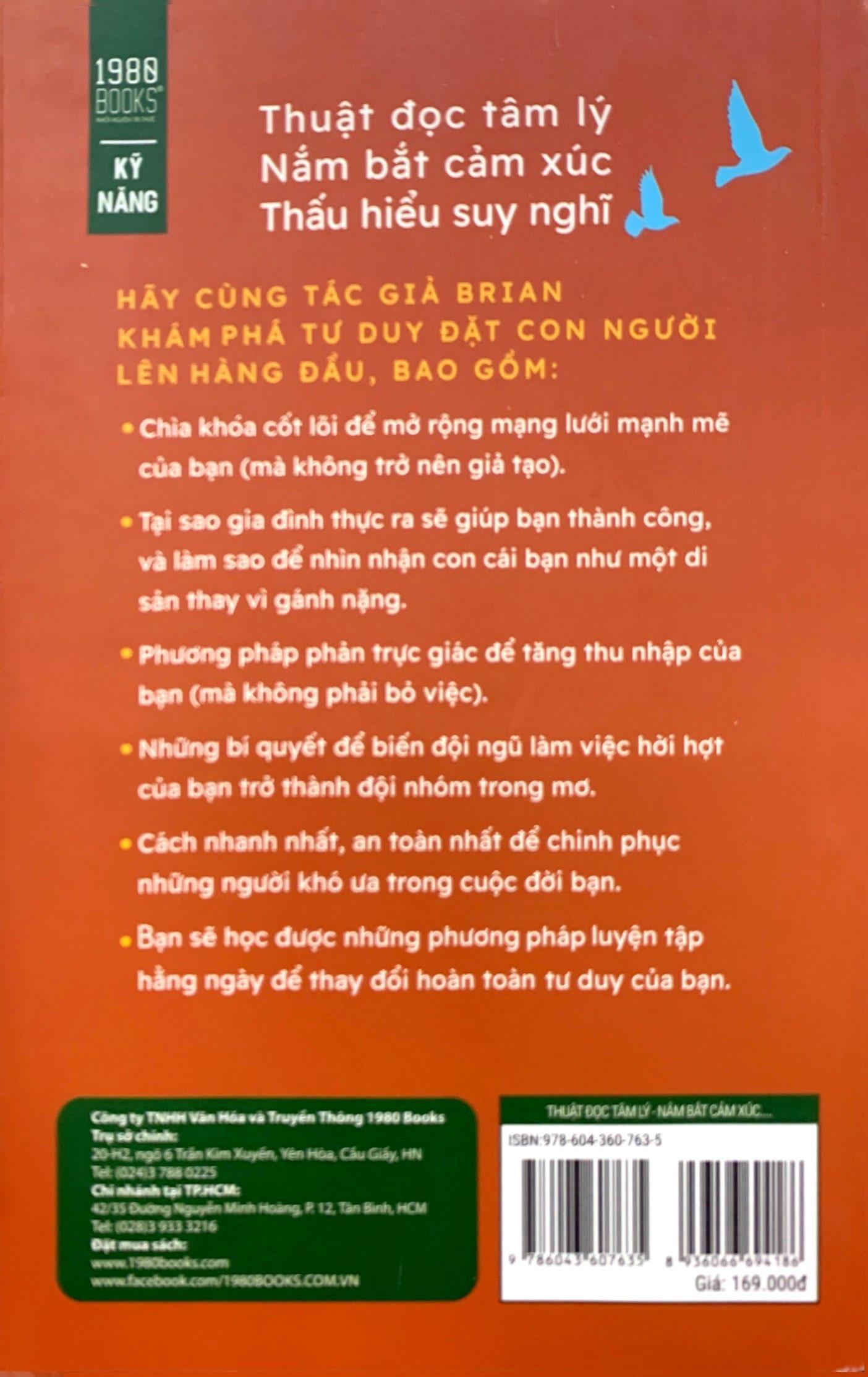 - Thêm vào đó, bạn sẽ học được những phương pháp luyện tập hàng ngày để thay đổi hoàn toàn tư duy của bạn. Cuốn sách . “Thuật đọc tâm lý, nắm bắt cảm xúc, thấu hiểu suy nghĩ’’ là một kế hoạch chi tiết theo từng bước để giúp bạn yêu công việc và quyết liệt theo đuổi đam mê. Với vô số những nguyên tắc chiến lược, những bí quyết thực tế, và những ví dụ sinh động, bạn sẽ nhận được sự trợ giúp đắc lực của mọi người xung quanh để tự tin và thành công. Bạn đã mệt mỏi vì phải vật lộn? Và đã sẵn sàng hành động ngay bây giờ? Hãy bắt đầu mở cánh cửa đến sự thịnh vượng ngay hôm nay.