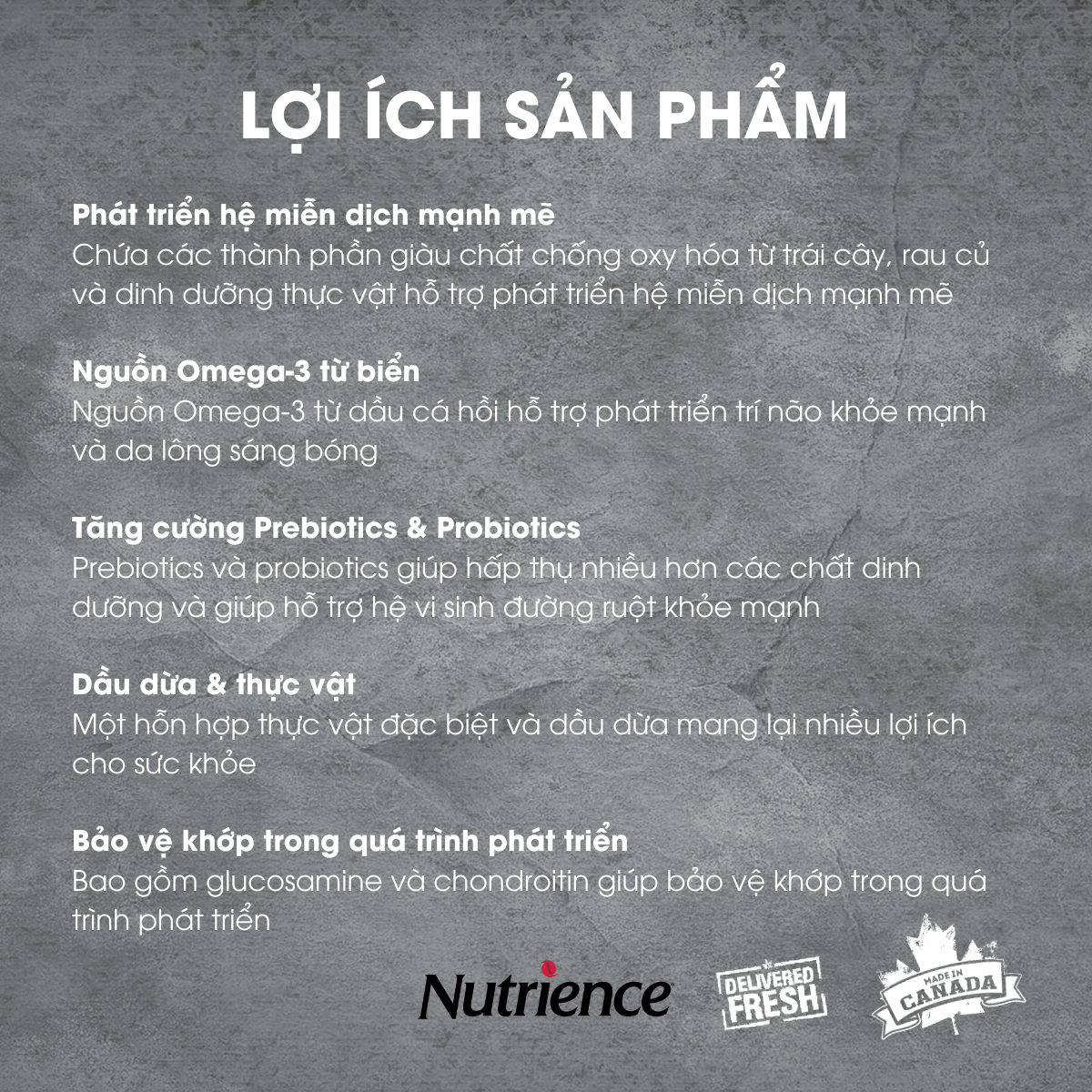 - Thức Ăn Cho Chó Con Khỏe Mạnh Nutrience Original - Thịt Gà, Rau Củ Và Trái Cây Tự Nhiên chất lượng cao là nguyên liệu chủ yếu trong công thức sản phẩm Nutrience Original