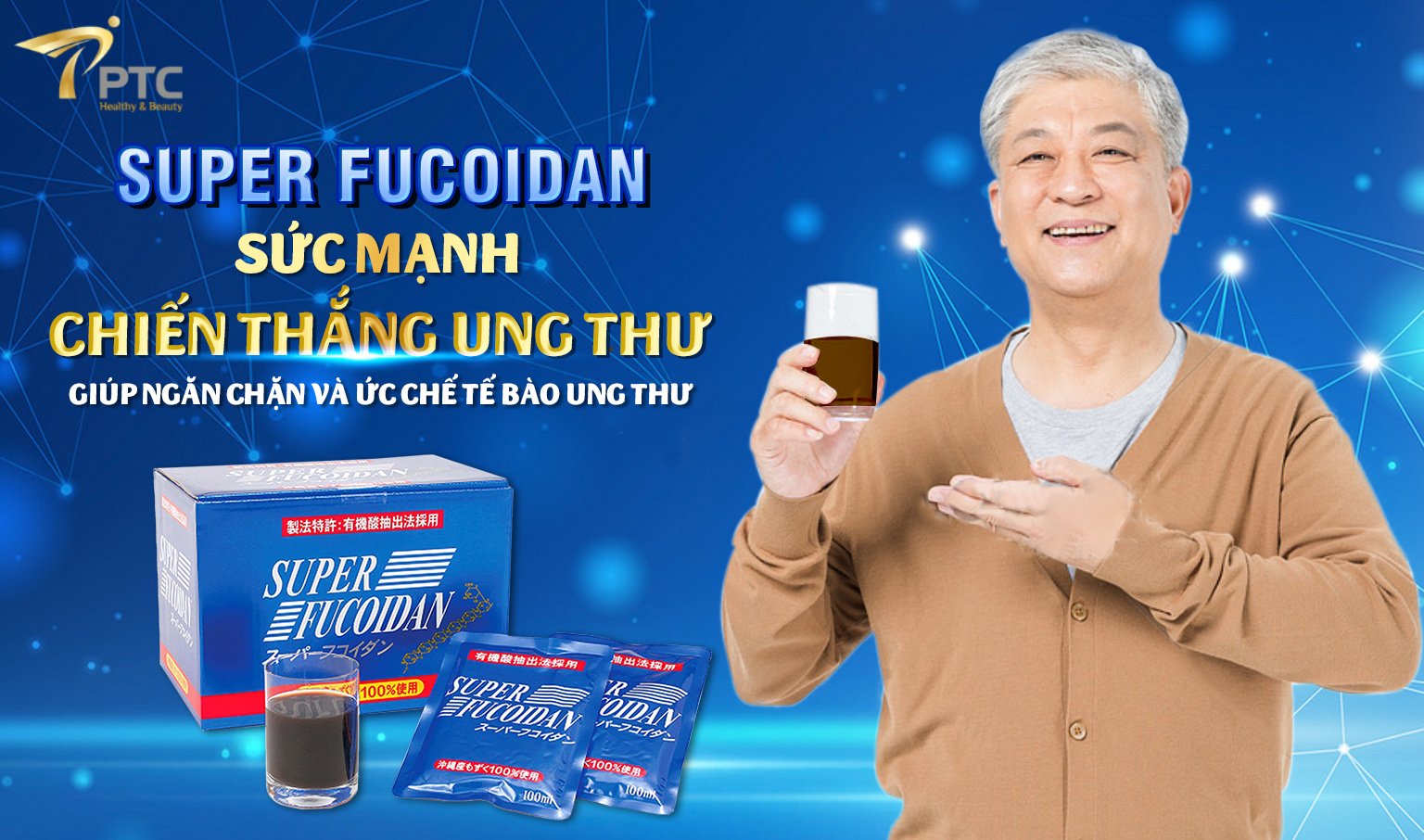 Super Fucoidan được sản xuất từ rong nâu Mozuku Nhật Bản kết hợp cùng thành phần sợi nấm Linh Chi. Những thành phần thiên nhiên cao cấp chứa hàm lượng dinh dưỡng cao giúp Super Fucoidan ngăn chặn và kiểm soát tế bào ung thư, thúc đẩy chu trình tự chết của tế bào ung thư - Chu trình Apoptosis (hay còn gọi là chu trình tự chết của tế bào); đồng thời tăng cường hệ miễn dịch, kích thích tạo ra tế bào mới.
