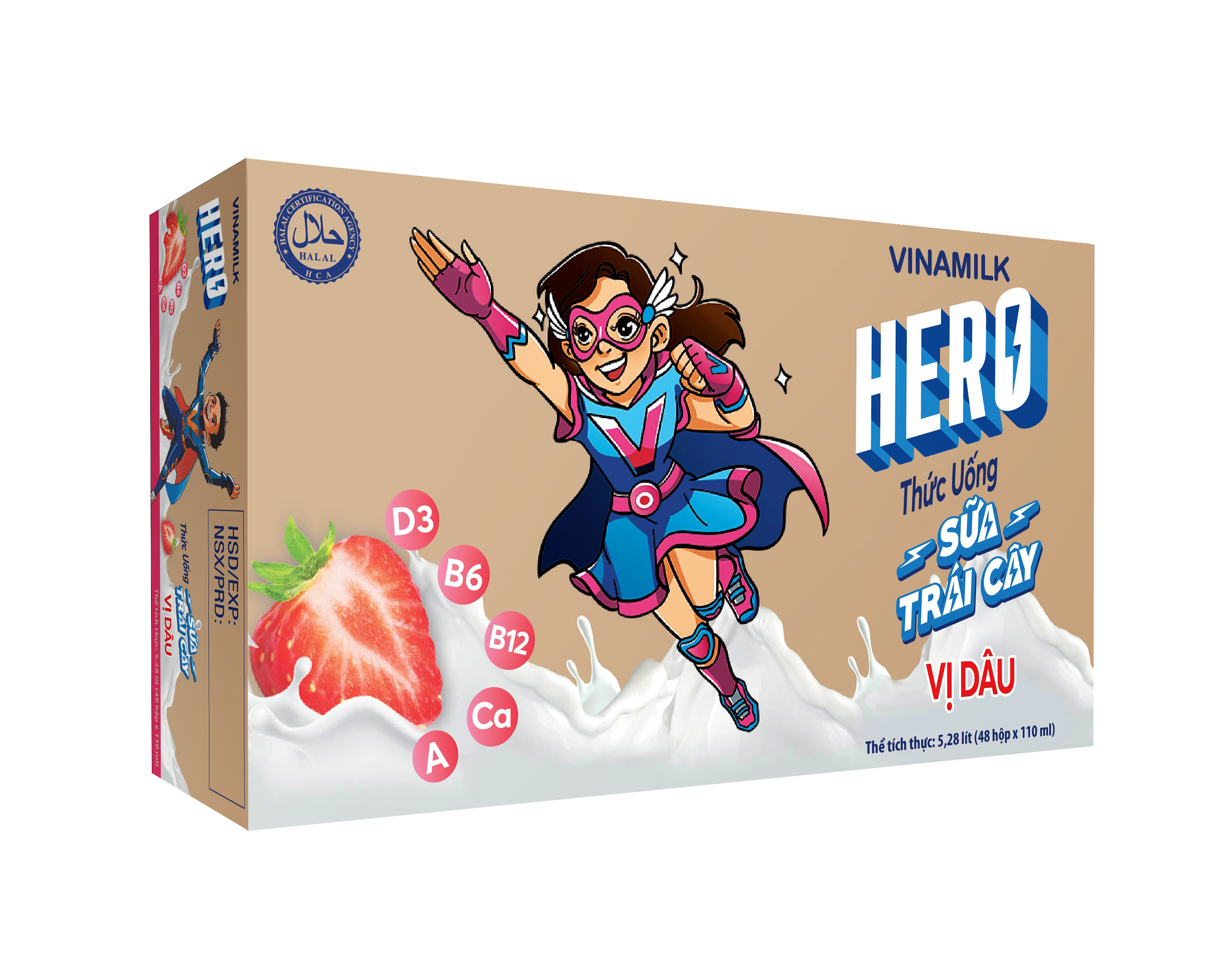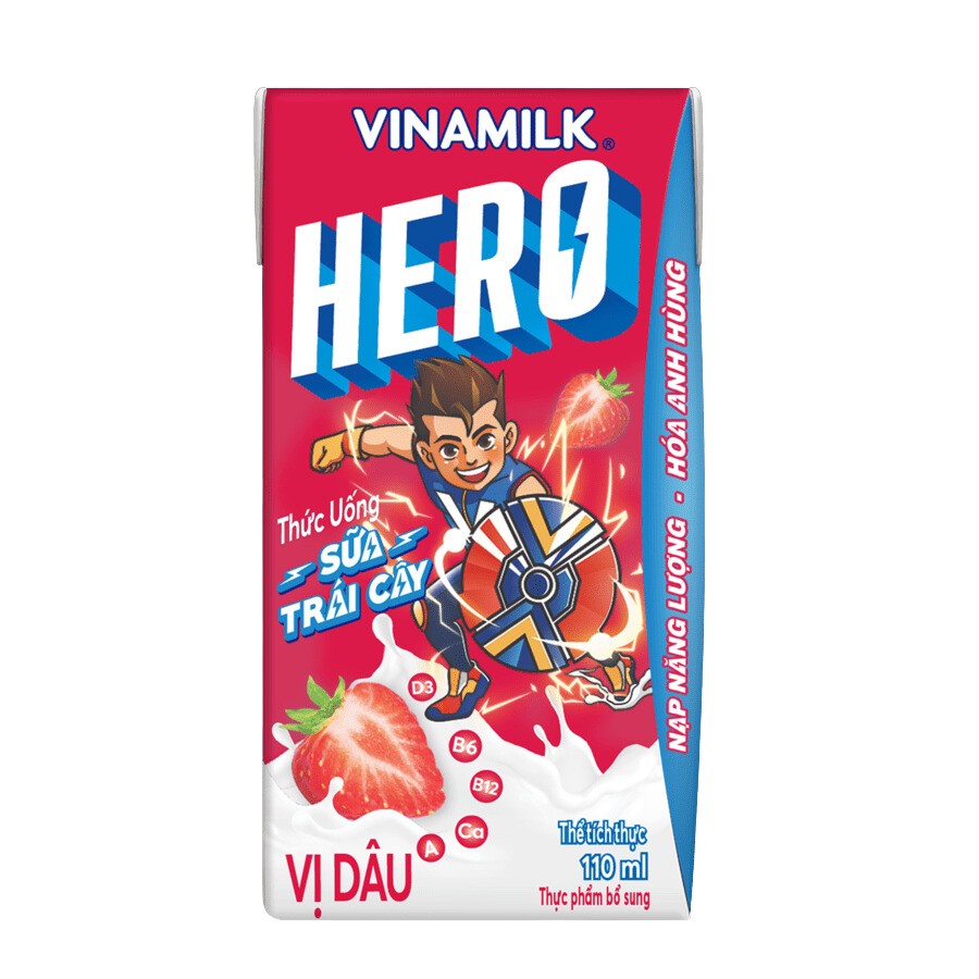 Thức uống sữa trái cây Vinamilk Hero mới ngon tuyệt Với Canxi và Vitamin D3 giúp xương chắc khõe,Vitamin a cho đôi mắt sáng tinh anh cungd ác vitamin nhóm B,giúp trẻ luôn tràn đầy