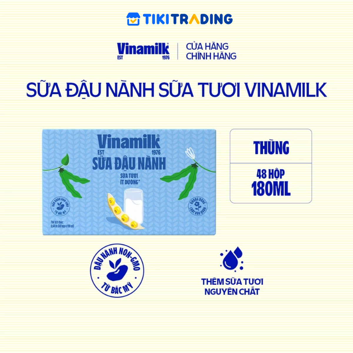 ✨Thùng 48 hộp sữa đậu nành sữa tươi ít đường Vinamilk 180ml