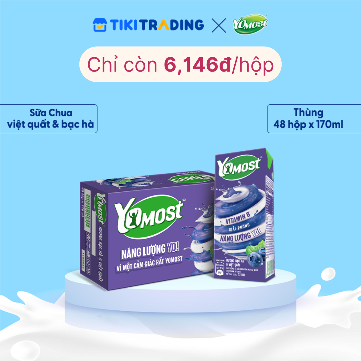 ✨Thùng 48 Hộp Sữa Chua Lên Men Tự Nhiên Yomost Bạc Hà - Việt Quất (170ml/Hộp)