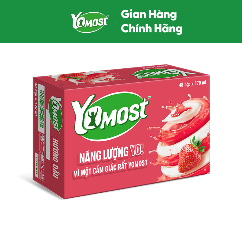 - Thùng 48 Hộp Sữa Chua Lên Men Tự Nhiên Yomost Vị Dâu được làm từ sữa chua lên men tự nhiên kết hợp cùng hương vị cam tươi tự nhiên thơm ngon, giúp cung cấp