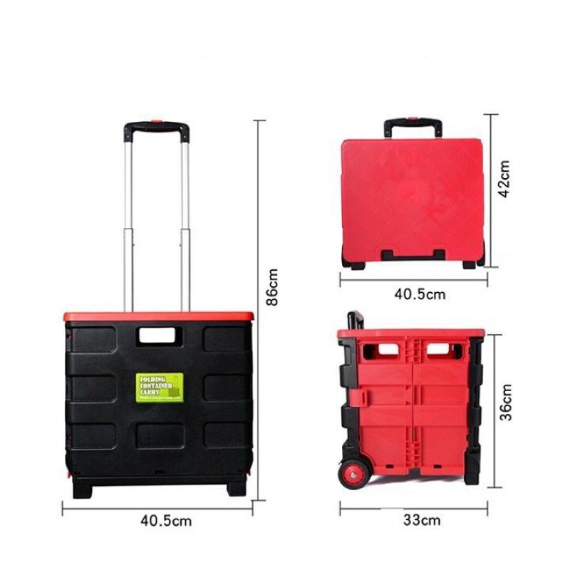 Thùng có thể gập gọn, có bánh xe, có tay kéo.