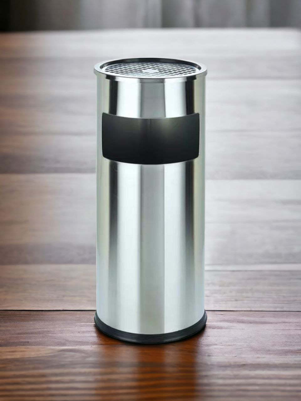 THÙNG RÁC INOX TRÒN CÓ GẠT TÀN A35-A - Thùng rác inox tròn có khay gạt tàn thuốc