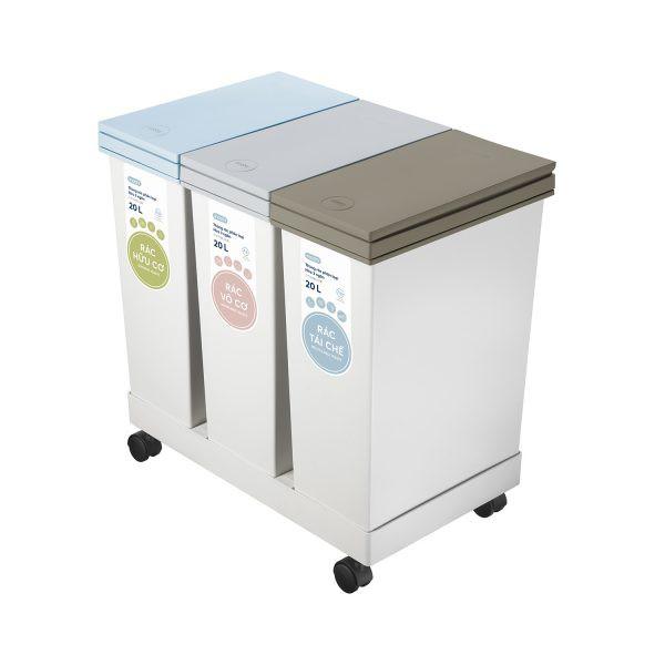 Mua tại TiktokThùng rác phân loại Hiro 3 ngăn Mã SP: .003N Kích thước: 537x336x530 mm Khối lượng: 3620 g Chất liệu: Nhựa PP, PA nguyên sinh, hạt màu, phụ gia kháng khuẩn (Ag+), lò xo Màu sắc: Xanh nhạt + Ghi sữa + Nâu Café HƯỚNG DẪN SỬ DỤNG: Dùng để đựng và phân loại rác trong gia đình, văn phòng, nhà hàng,… ƯU ĐIỂM: Thiết kế hiện đại, dễ dàng tháo lắp và vệ sinh, bánh xe di động giúp di chuyển dễ dàng ===GÓC NHẬT TRONG NHÀ VIỆT===