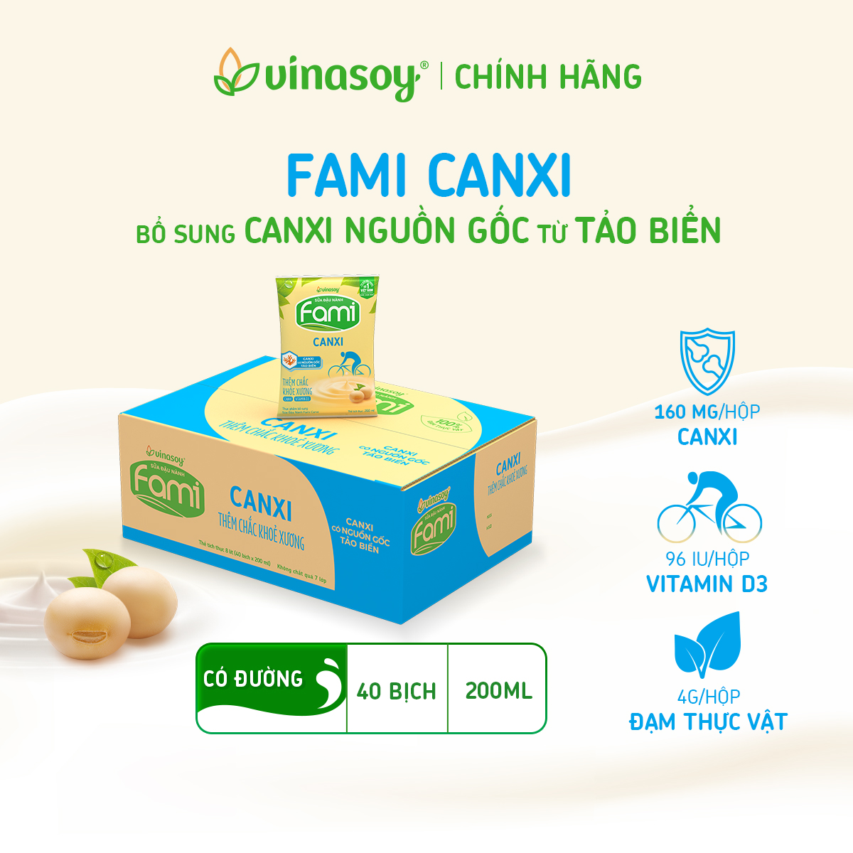 FAMI CANXI - ĐẬU NÀNH THÔI, MÀ CỨNG CÁP TRĂM PHẦN với Canxi có nguồn gốc Tảo biển
