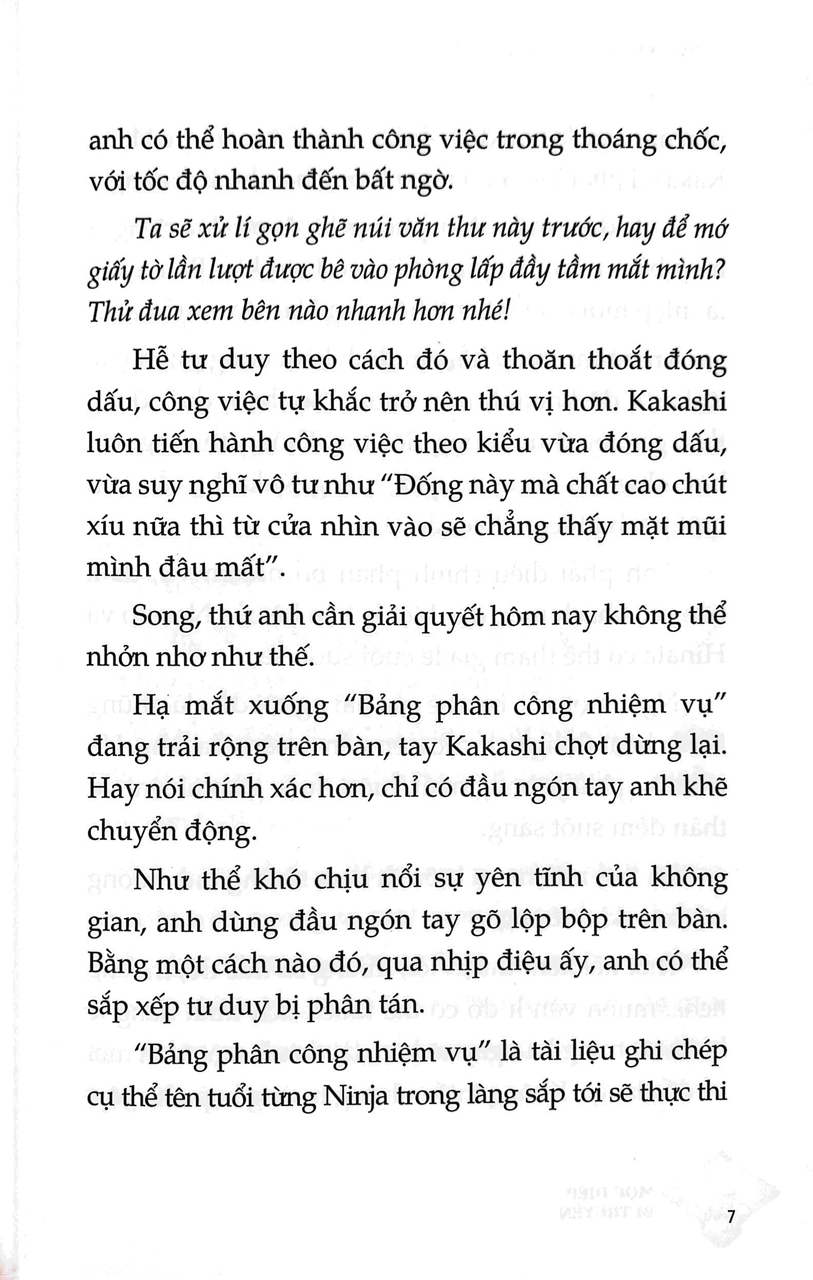 Mua tại TiktokThông tin sản phẩm Mã hàng 8935244899634 Độ Tuổi 14+ Tên Nhà Cung Cấp Nhà Xuất Bản Kim Đồng Tác giả Masashi Kishimoto, Sho Hinata Người Dịch Hitokiri NXB Kim Đồng Năm XB 2023 Ngôn Ngữ Tiếng Việt Trọng lượng (gr) 295 Kích Thước Bao Bì 19 x 13 x 1.3 cm Số trang 276 Hình thức Bìa Mềm Tiểu Thuyết Naruto - Mộc Diệp Bí Truyền: Chúc Ngôn Nhật Hòa Trước thềm hôn lễ của Naruto và Hinata, hội bạn bè thân thiết trong làng được giao nhiệm vụ tuyệt mật: Tìm quà cưới cho đôi uyên ương. Các đồng đội làng Lá sẽ chọn quà nào cho họ? Vì Hinata, nhiệm vụ cuối cùng của Đội 8 đang thách thức Shino và Kiba là gì? CÁC NINJA NHỘN NHỊP CHÚC MỪNG HỈ SỰ CỦA THỜI ĐẠI MỚI. CHẲNG BAO LÂU NỮA, LỄ THÀNH HÔN CỦA ĐÔI TRAI TÀI GÁI SẮC SẼ BẮT ĐẦU.