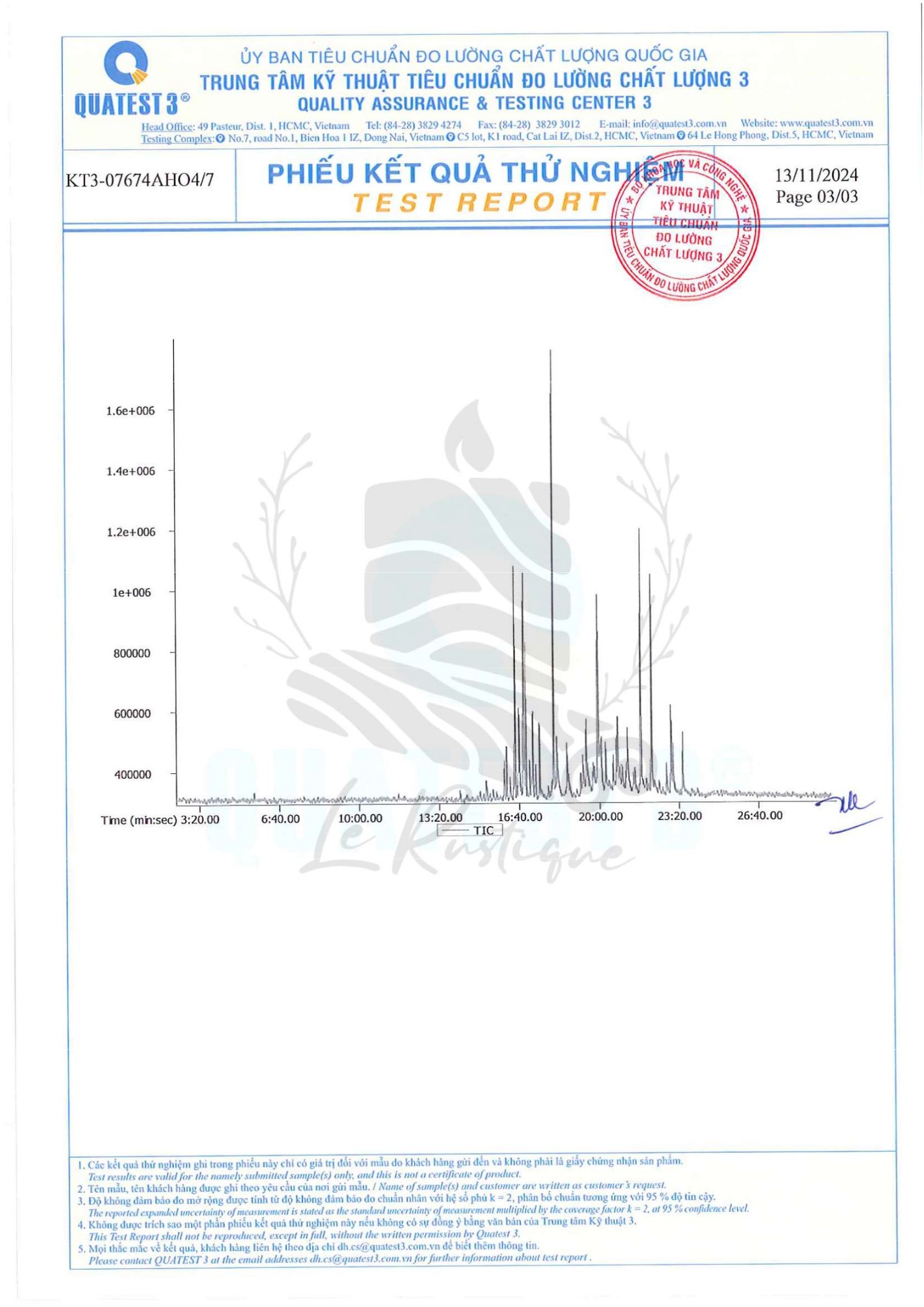 ► THÀNH PHẦN: 100% tinh dầu cỏ hương bài hữu cơ với các thành phần chính như: Khusimol (5-15%), β-Vetivenene (3-20%), Isovalencenol (5-14%), α-Vetivone (3-6%), β-Vetivone (0-5%), Isoeugenol (<1%). Quét mã QR để xem kết quả phân tích GC-MS với hàm lượng của các thành phần trong tinh dầu.